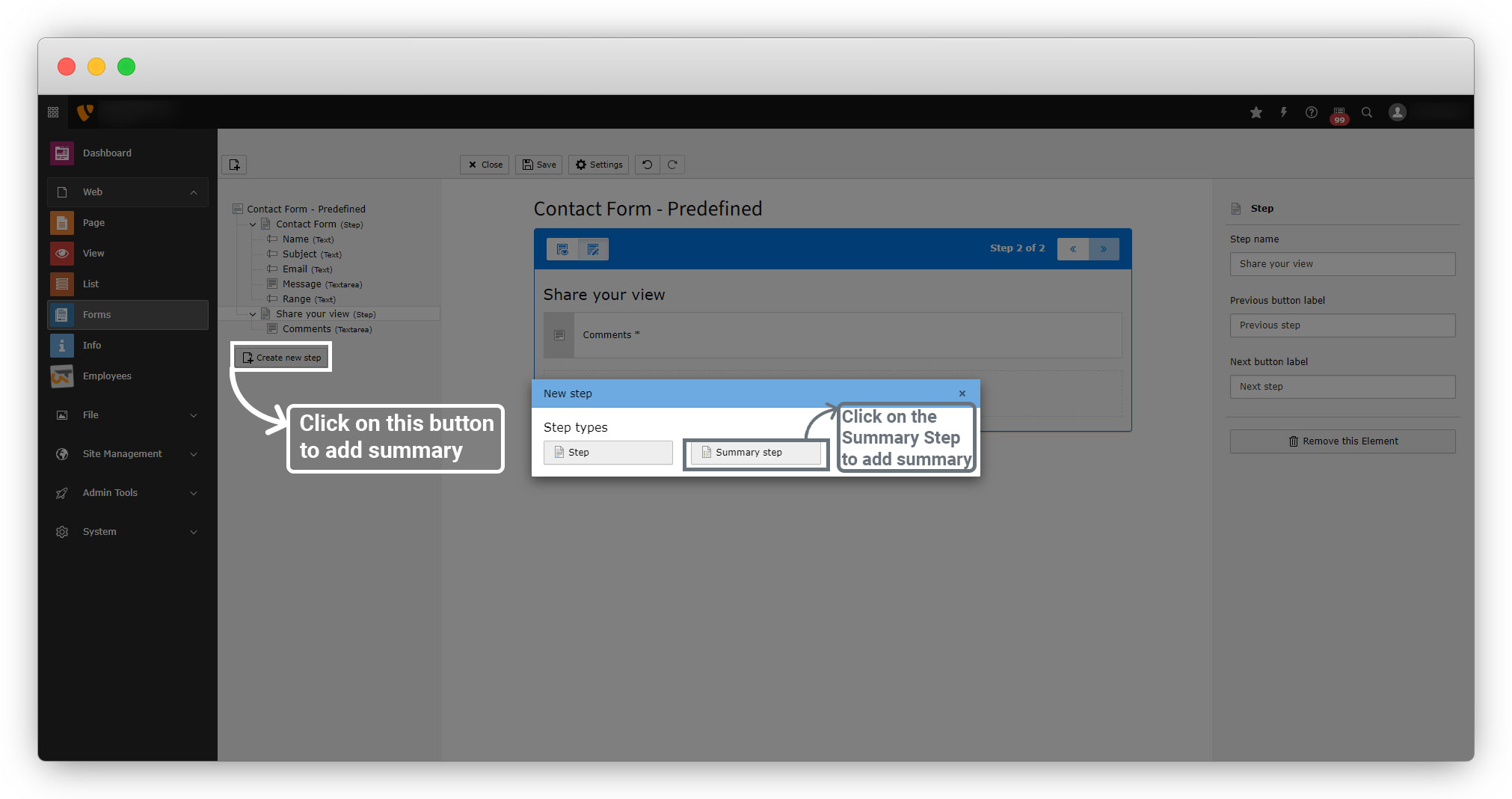 Let’s add a summary page now after step 2.