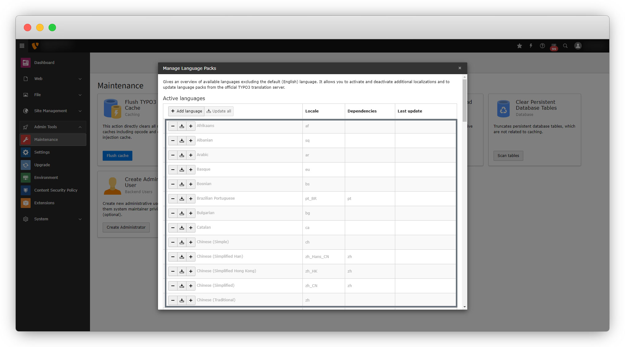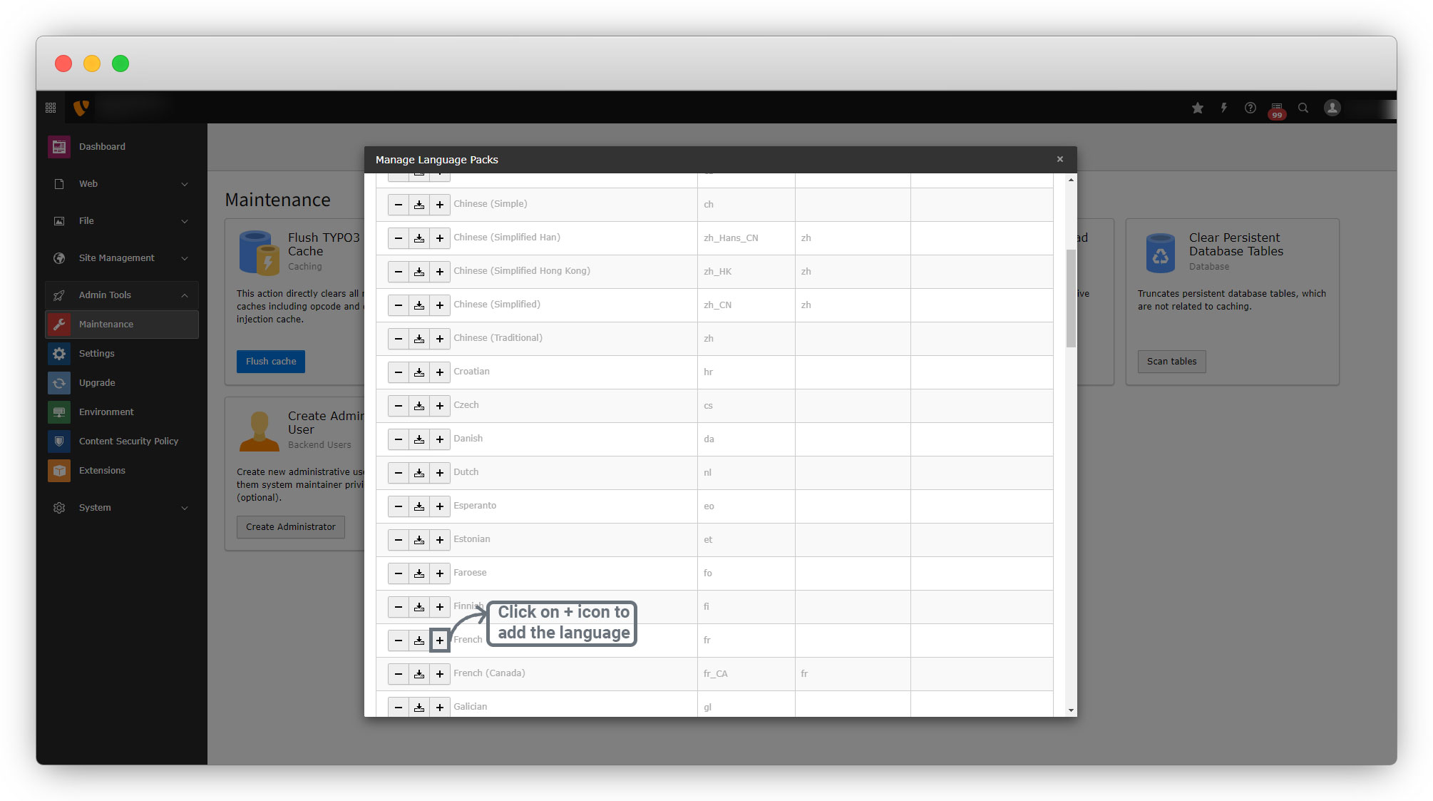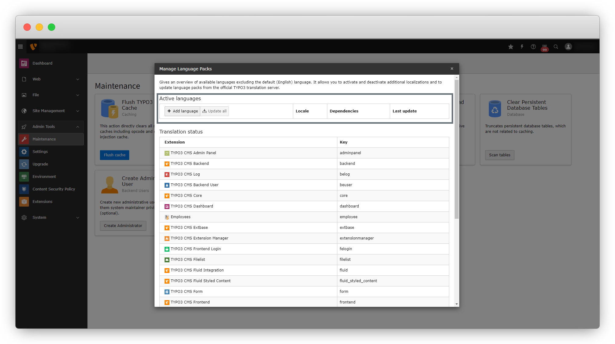 - When we install the TYPO3 setup, it comes with the English language only, if you want to make a multi-language site, then you will have to add the languages in TYPO3 back-end.