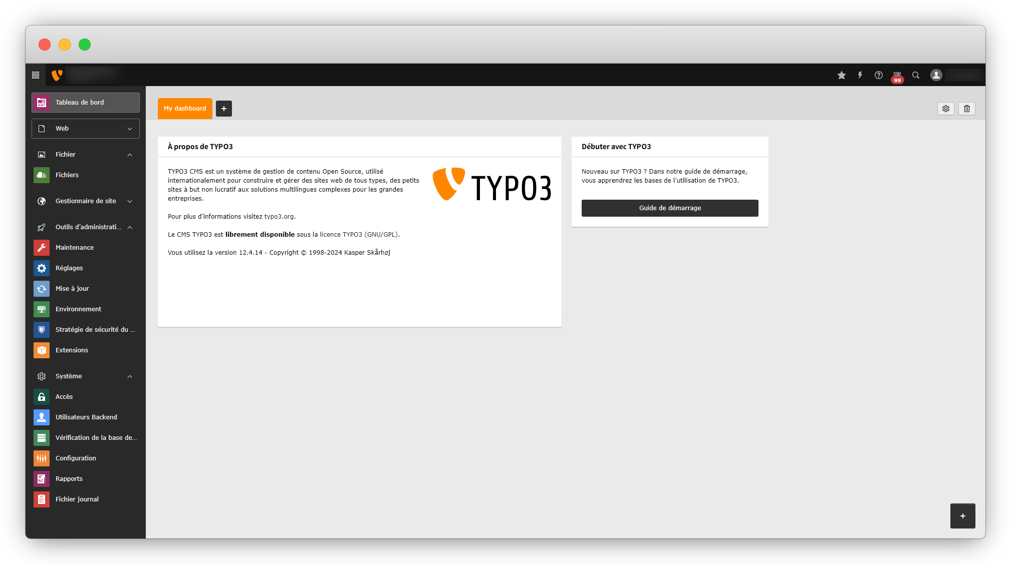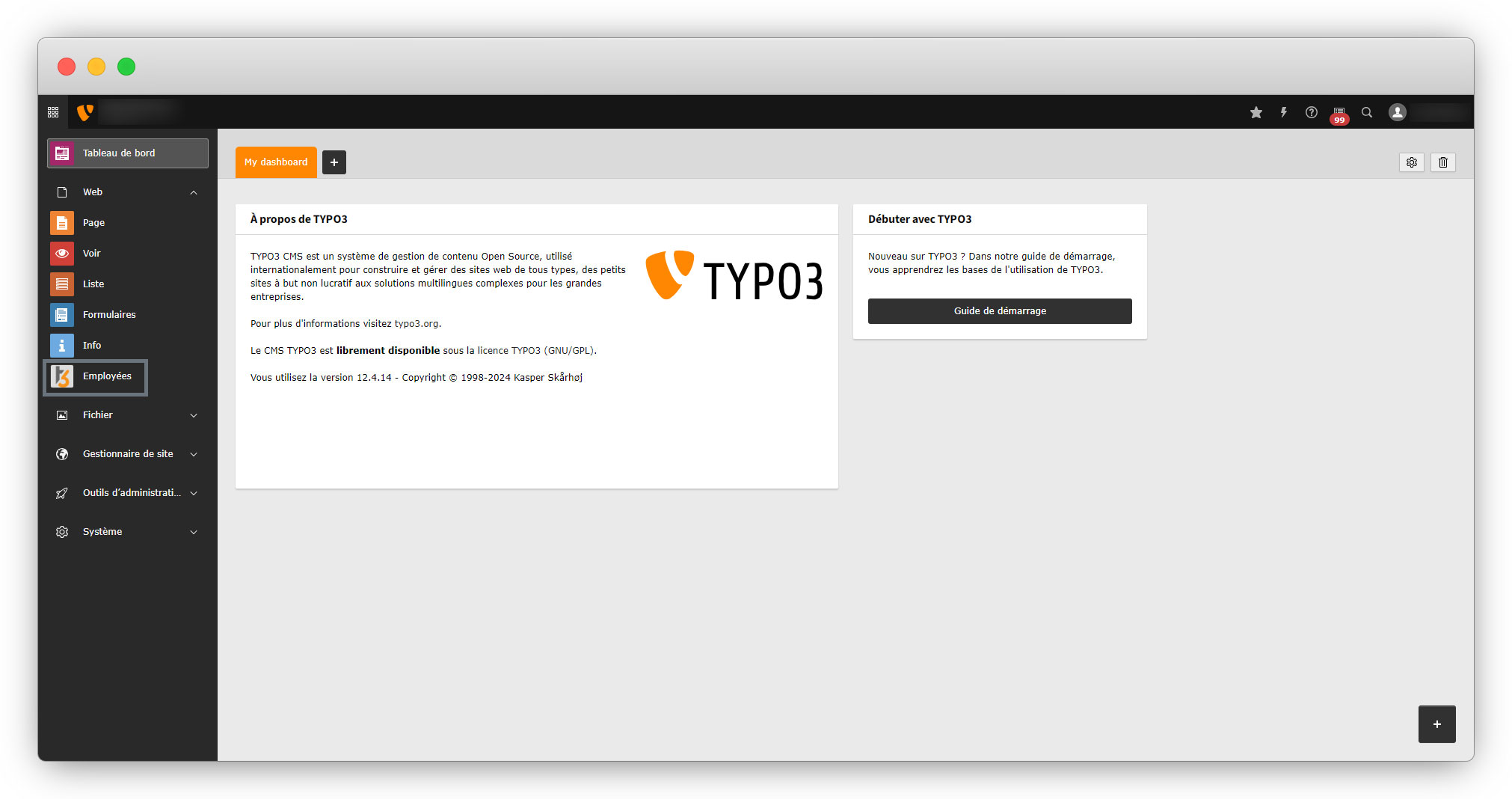 3. After saving the user settings, you will see the back-end with the selected language. Below is the screenshot of the back-end after adding the French language.