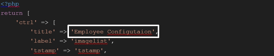 9.1. As we know the first title “Employee Configuration” is for the extension configuration, open the TCA file for the configuration – extemployeeConfigurationTCAtx_employee_domain_model_conf.php