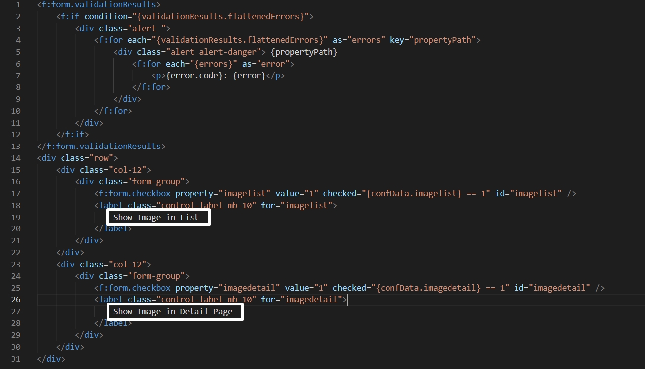 <f:form.checkbox property="imagedetail" value="1" checked="{confData.imagedetail} == 1" id="imagedetail" />