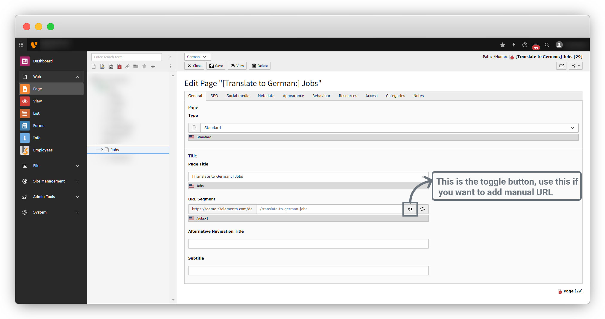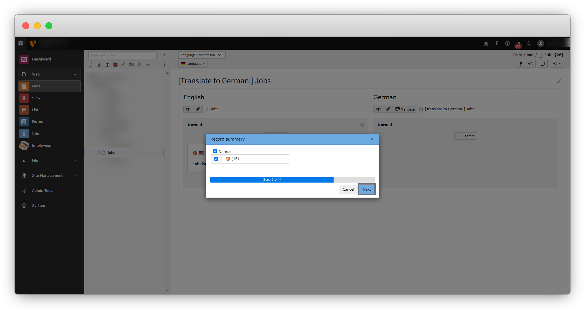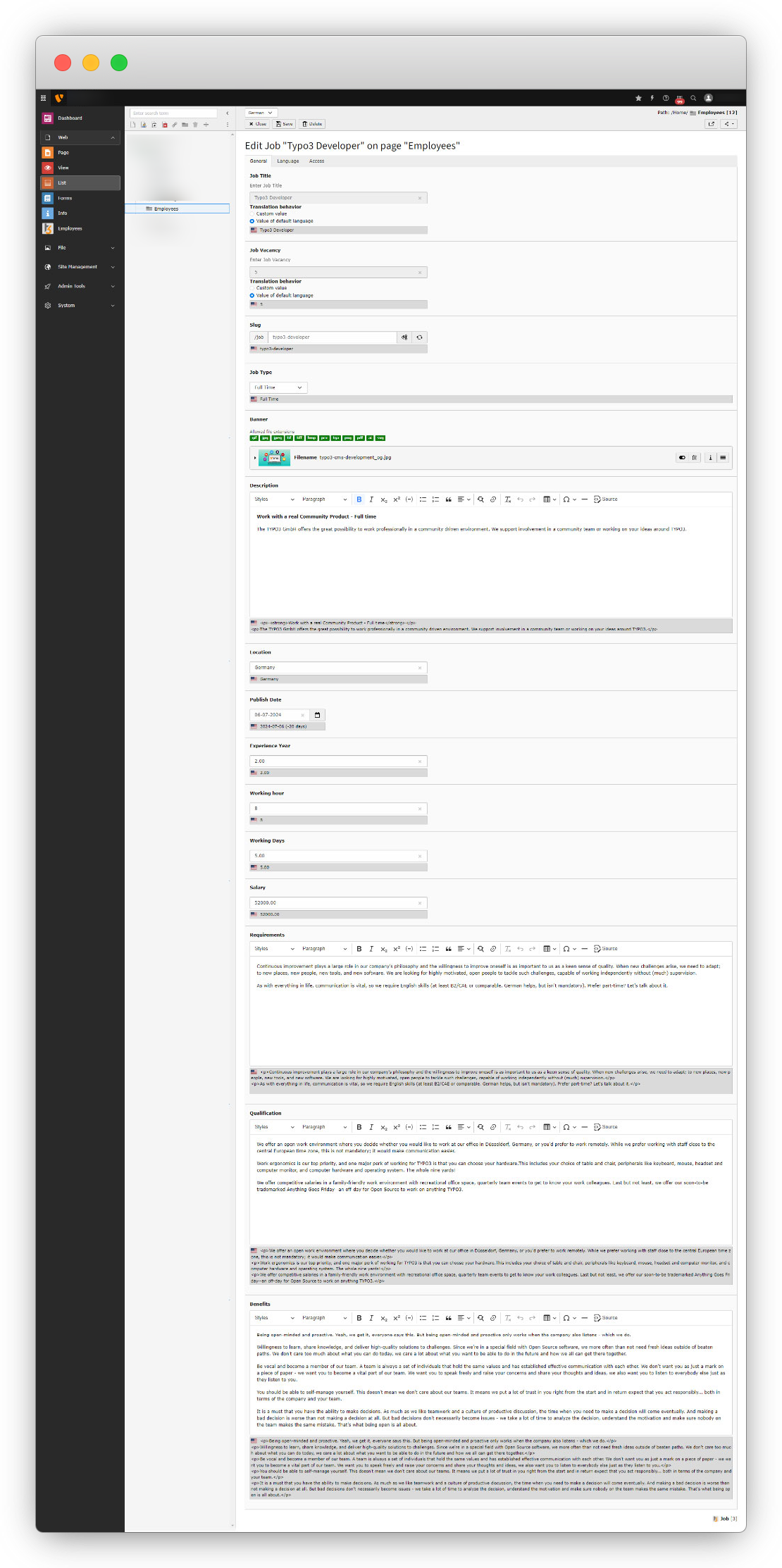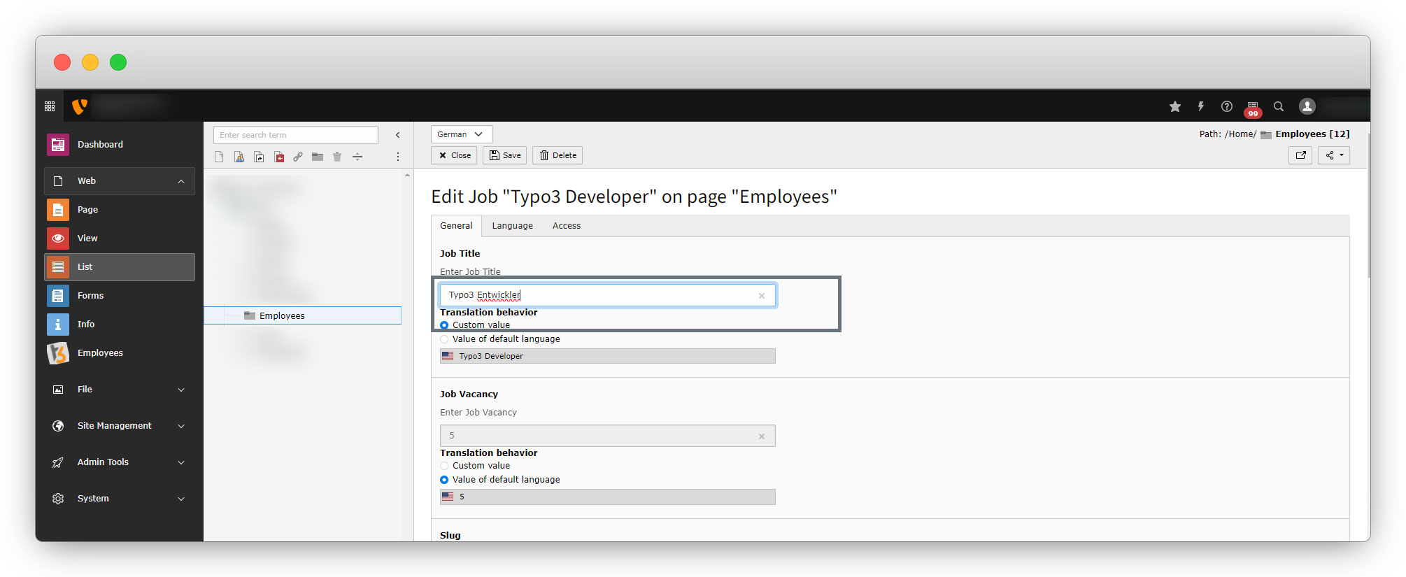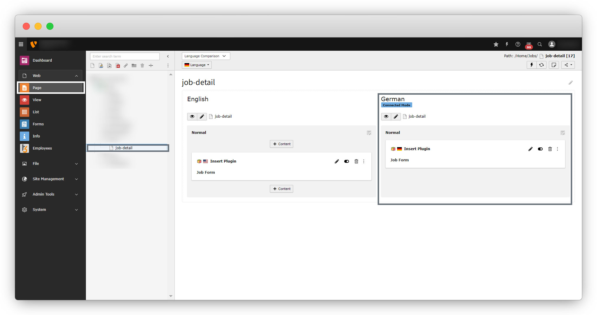 16. But still we can not open the detail page in German language as we didn’t translated the job detail page. Go to the Web > Page > Jobs > job-detail and translated the page by following the same procedure we did for the Jobs page.