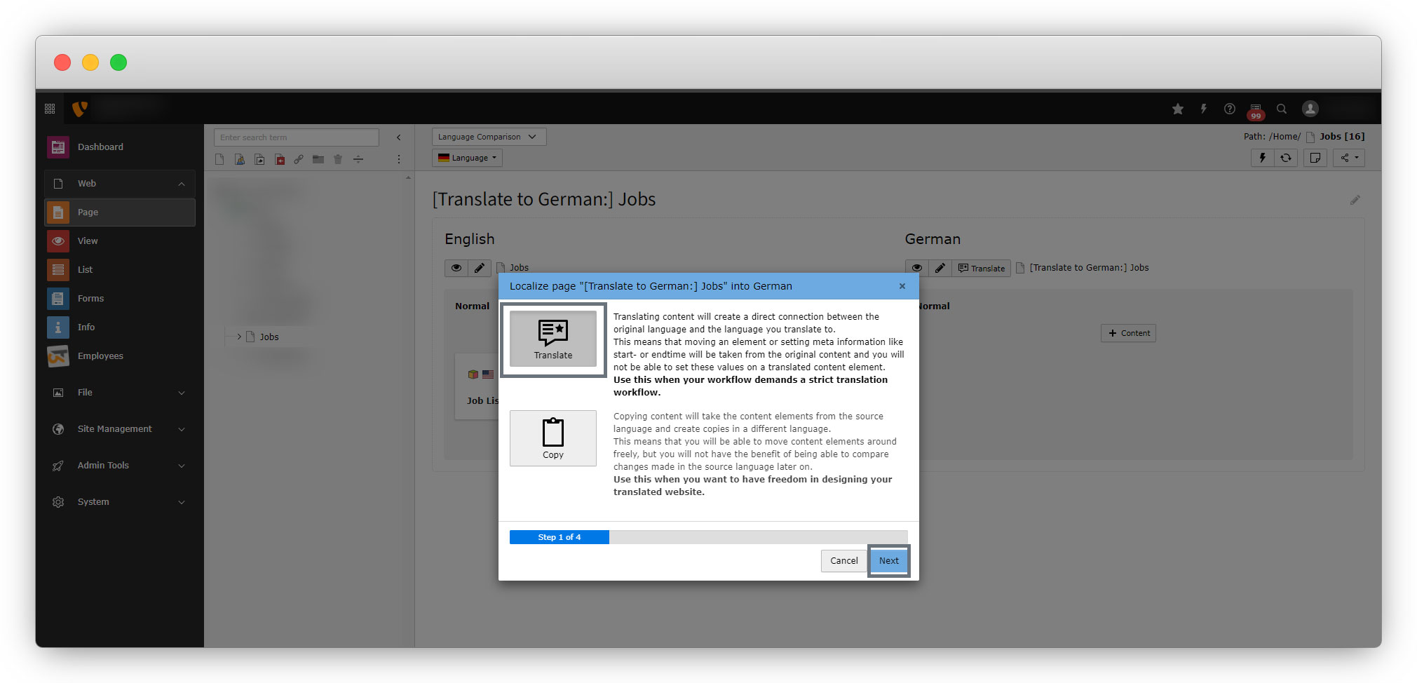 7. Then select the content that needs to be translated and click on the “Next” button.