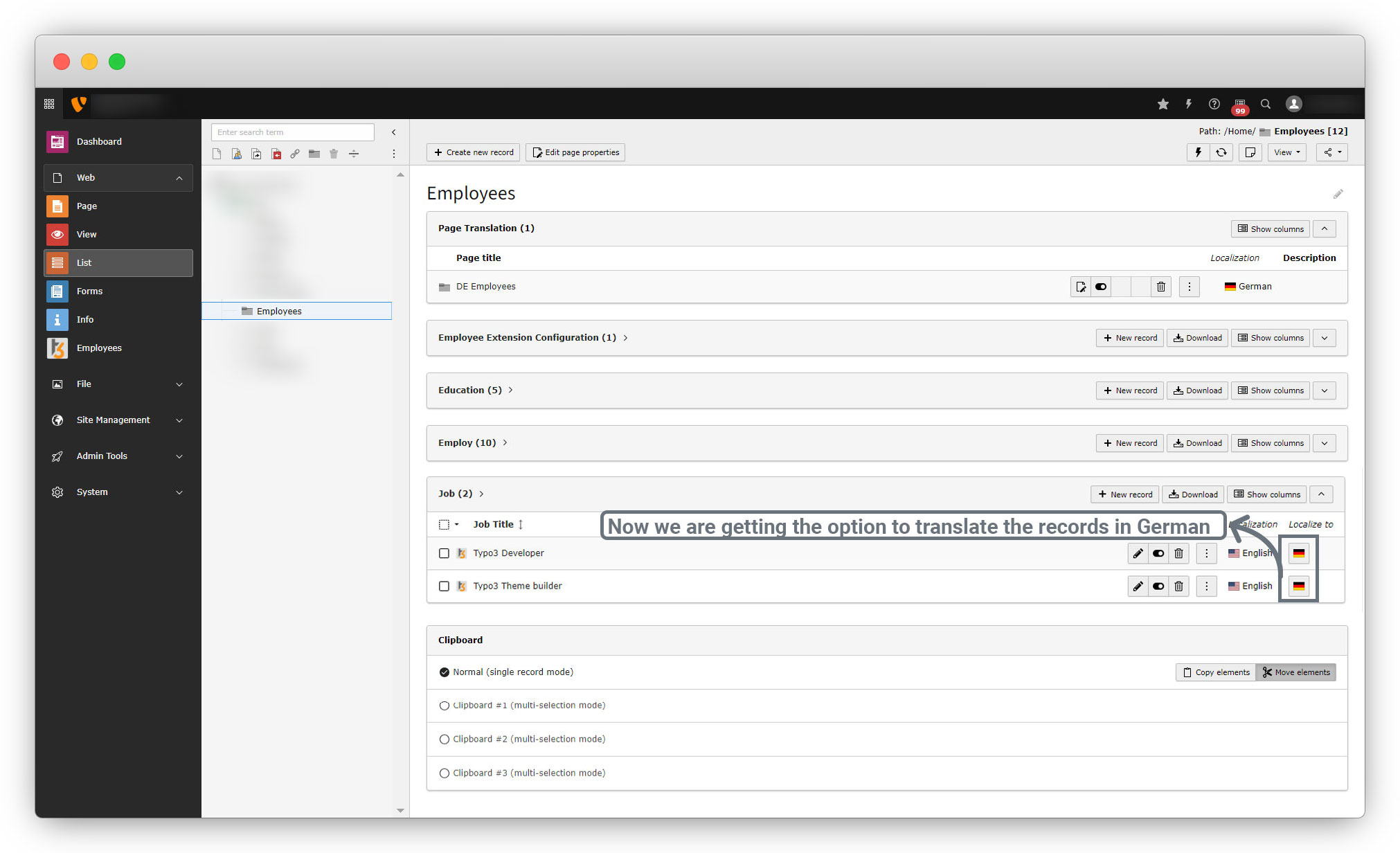 10. Reload or re-open the folder “Employees”, and you will see the translated records as seen in the screenshot below: