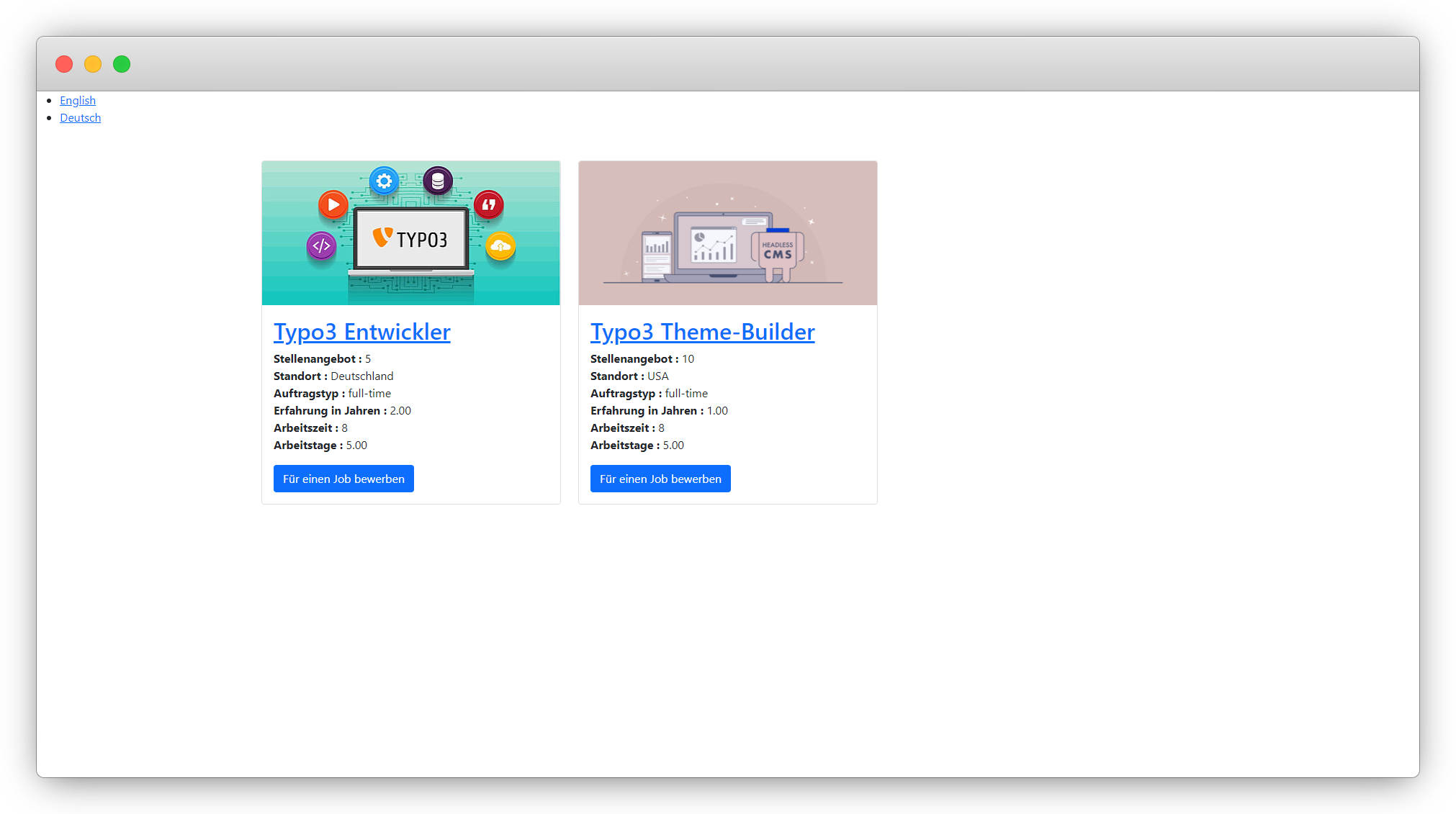 17. After translation of the job-detail page, flush the cache and reload the front-end and you will see the links for the detail pages.