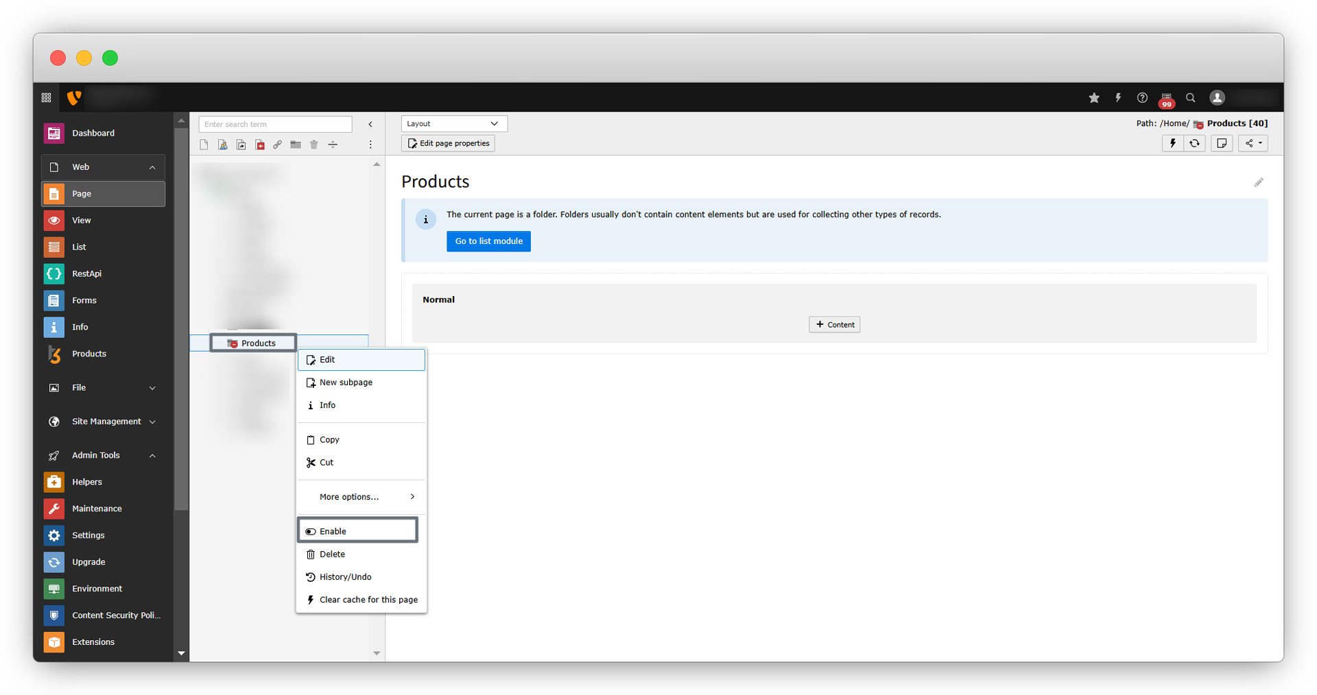 1. Create a folder to store the products. You can name the folder as you wish. Here let’s create the folder named “Products”, by default the folder is disabled.