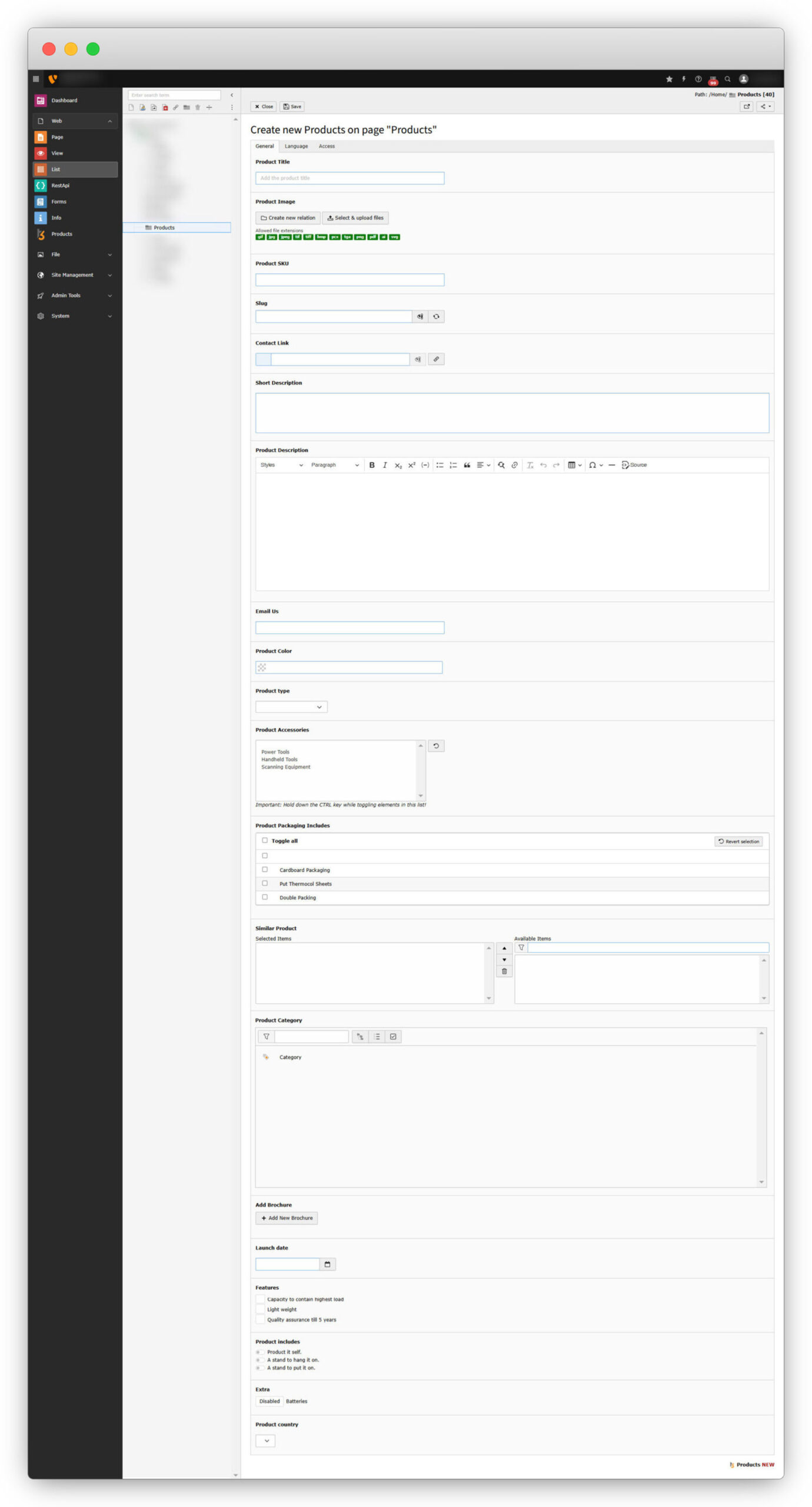 3. Go to the “List” module, and select the folder, and click on the “Create new record” to add new products.