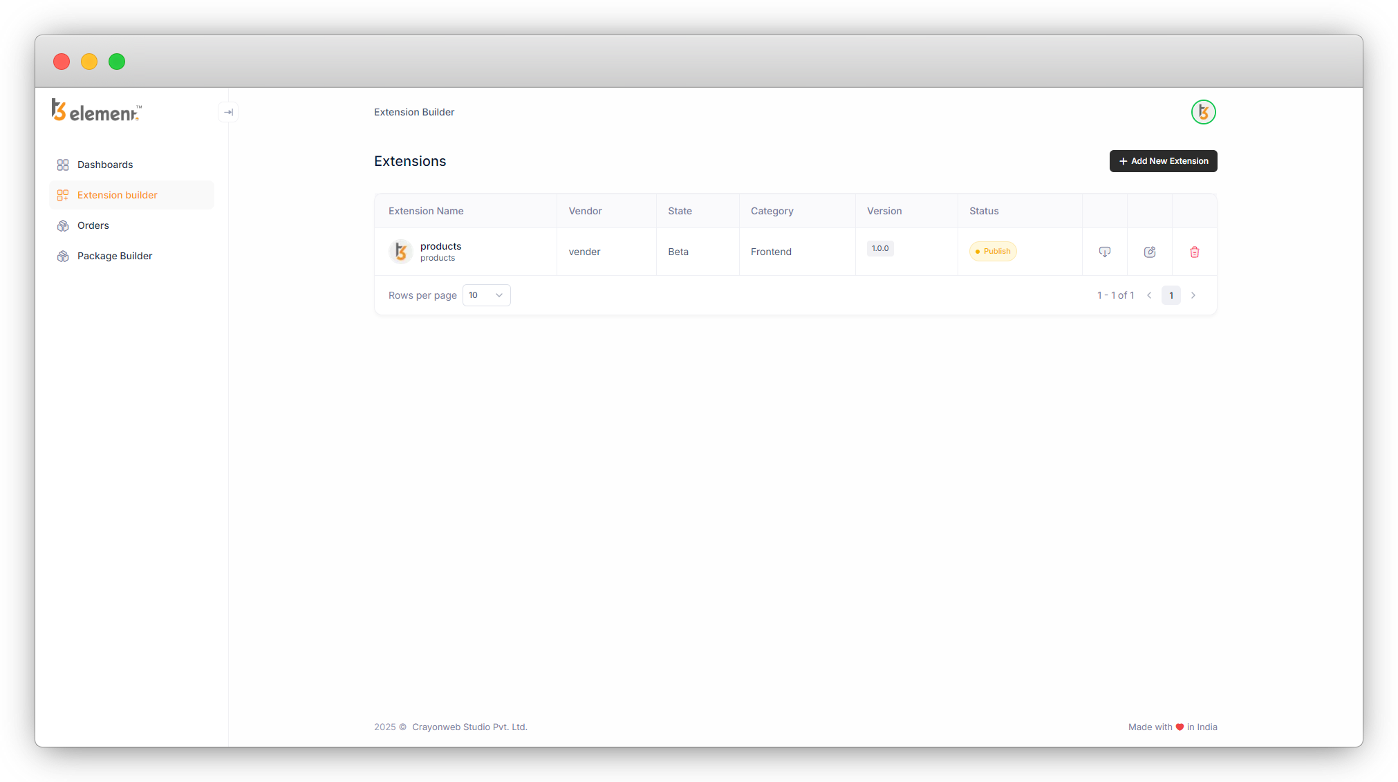 6. As seen in the above screenshot, the extension has been saved and listed. On the far right side, there are 3 action icons, “Download Extension”, “Edit extension” and “Delete extension”.