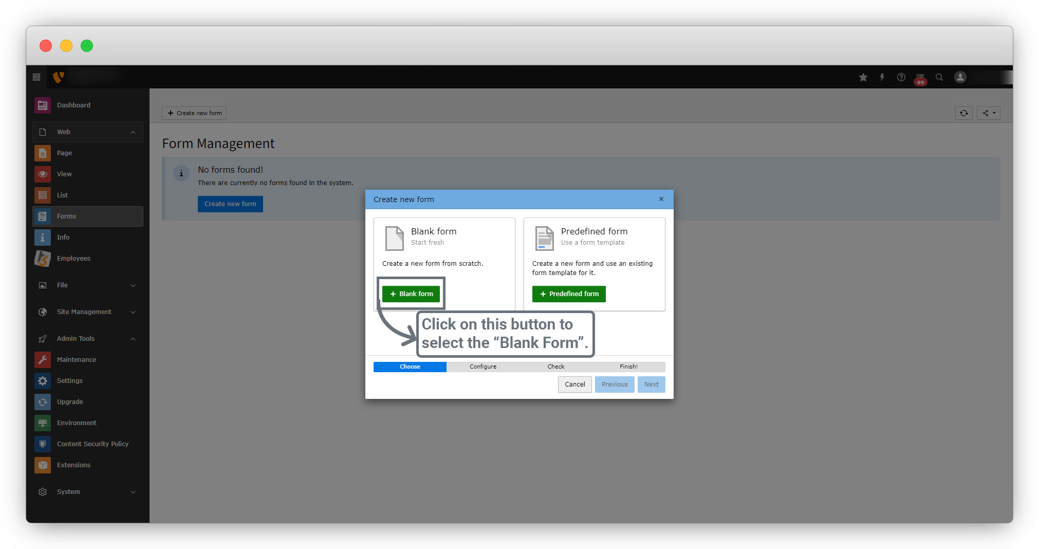 2. After selecting the “Blank Form” you will get an option for configuration where you can set the name of the form.