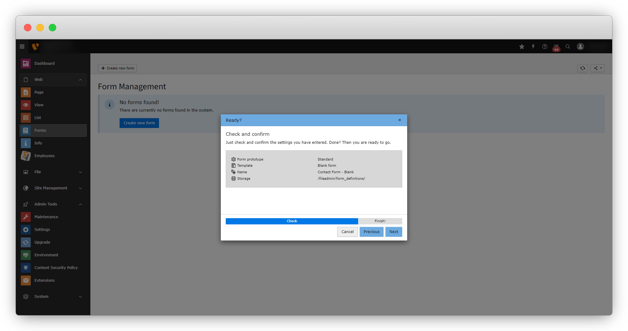 4. Click on the “Next” button and the form will be created and you will see the screen below: