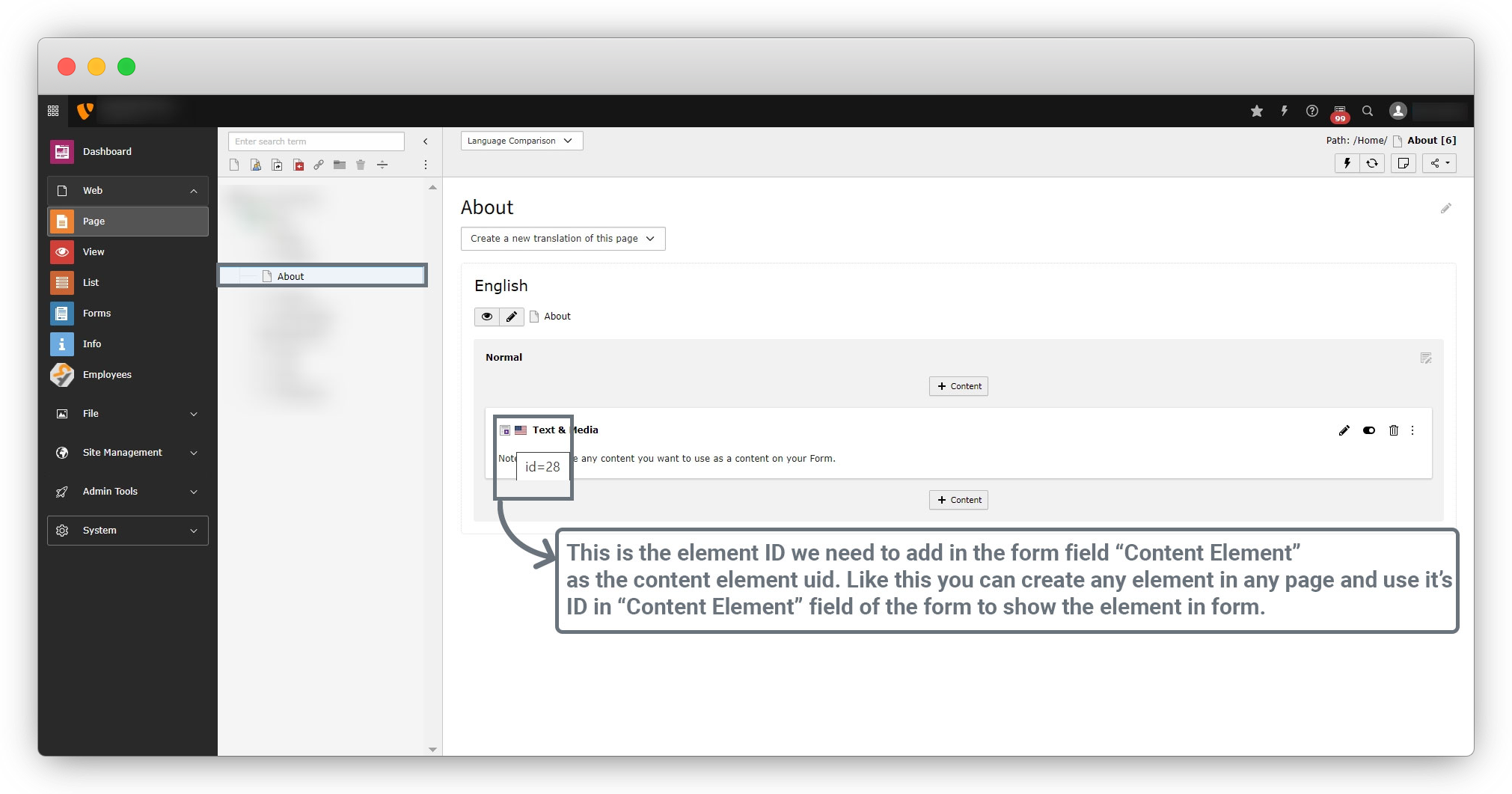 2. [ Page content ]: Modal which displays the page tree. You can select a page and a corresponding content element. You can check the below screenshots for understanding.