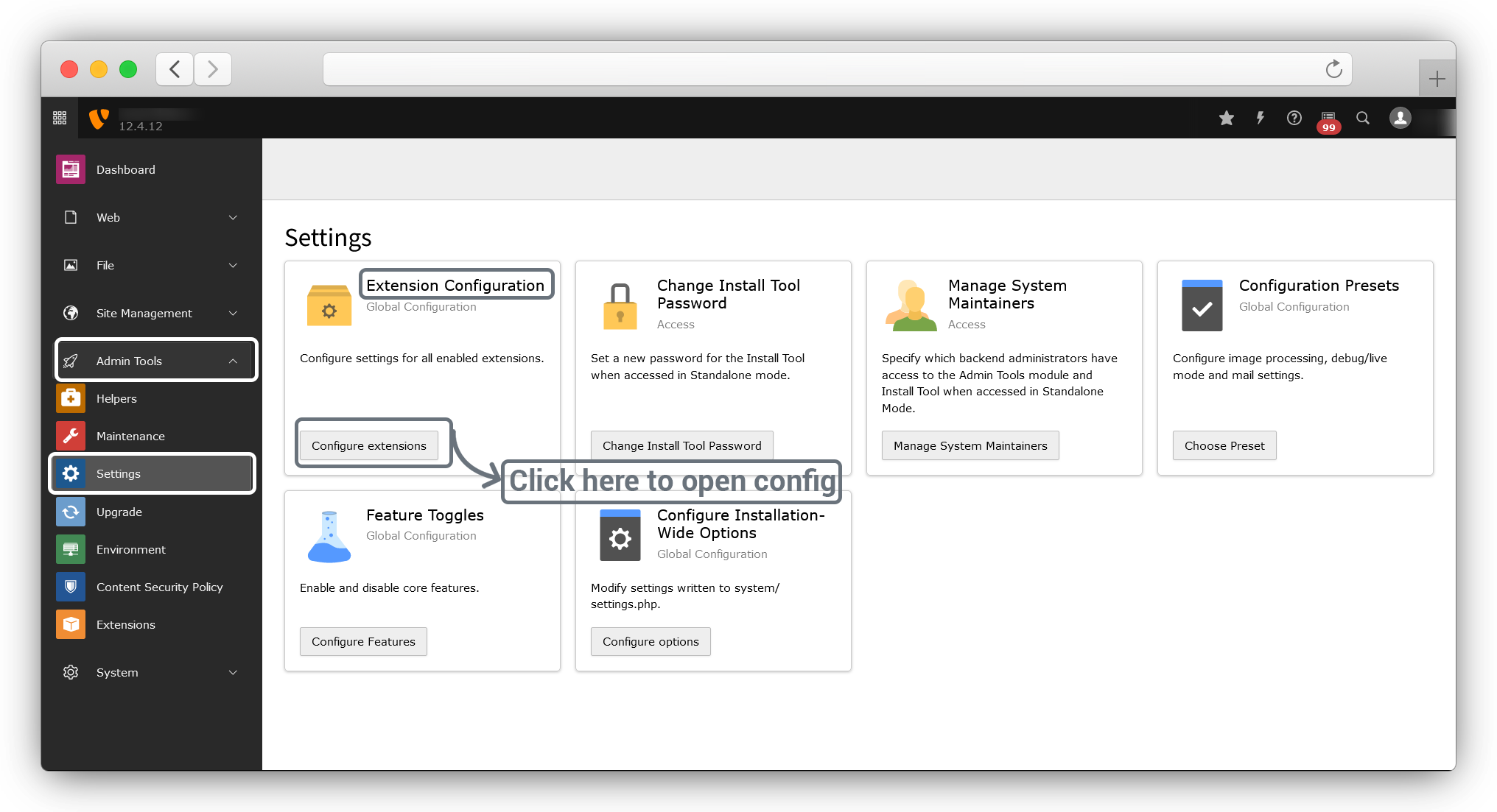 1. Open your TYPO3 setup and follow the steps below, before the extension upload to prevent any error in extension installation in the latest versions of TYPO3 (specifically 12.x.x & 13.x.x here).