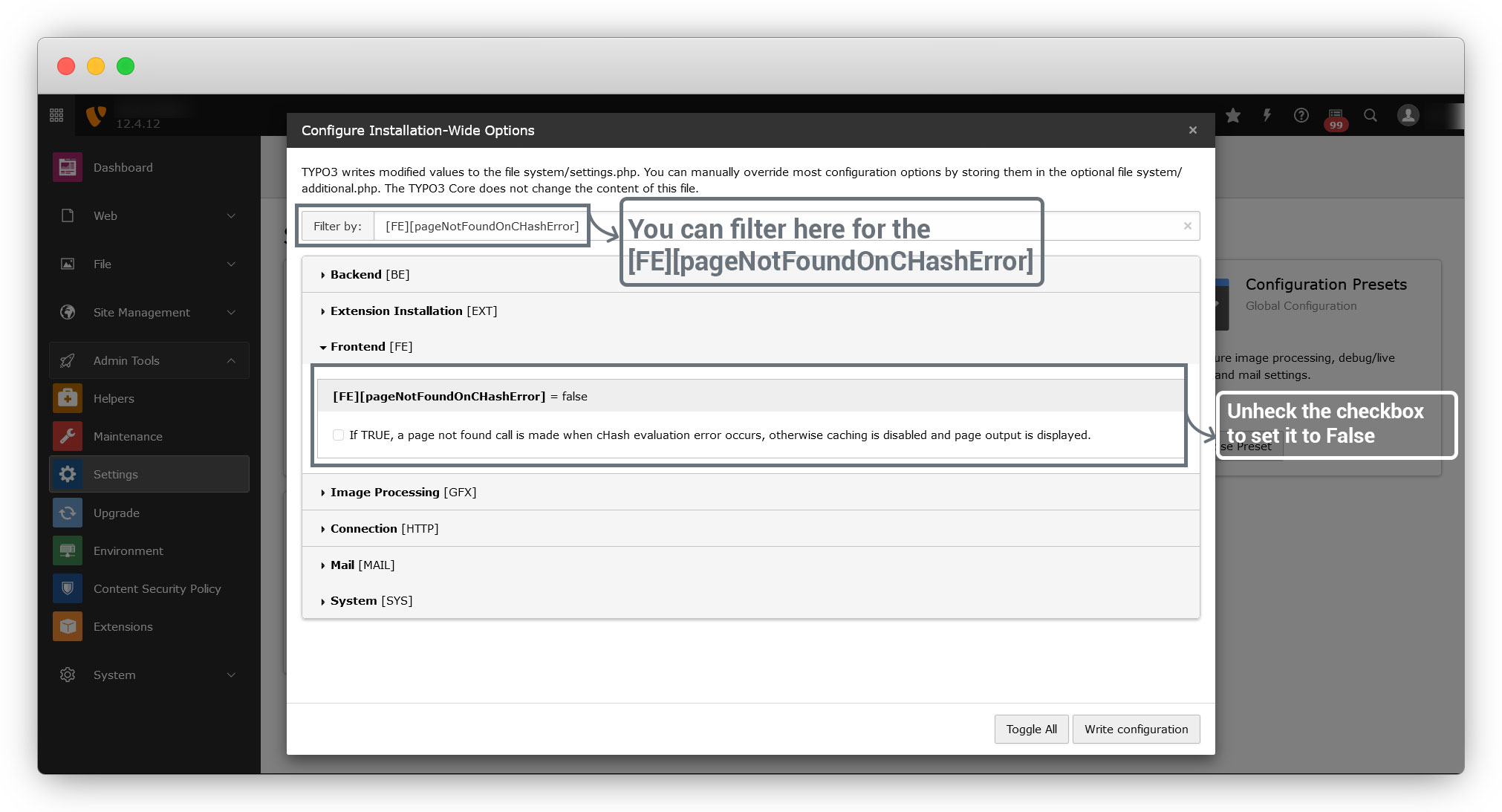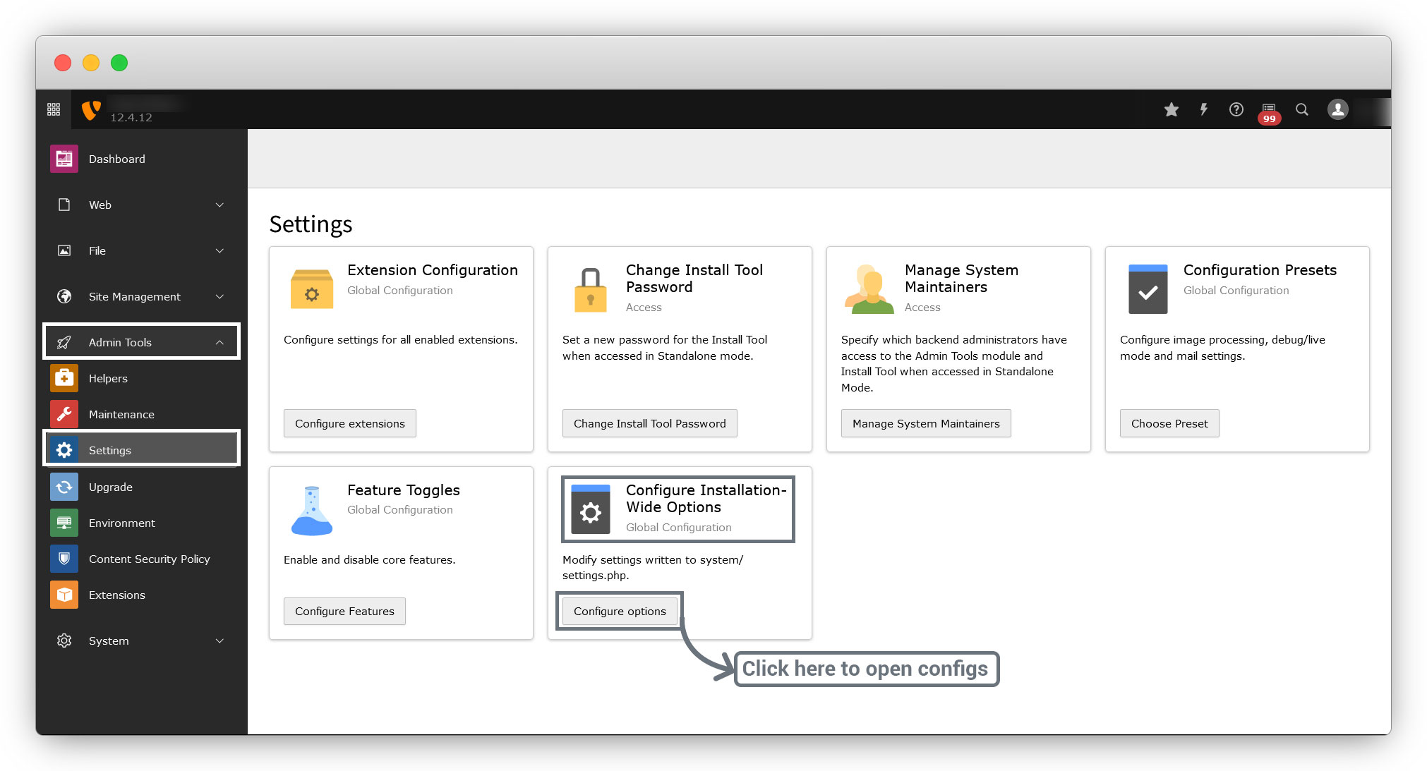 1. Go to Admin Tools > Settings > Configure Installation-Wide Options and click on Configure Options