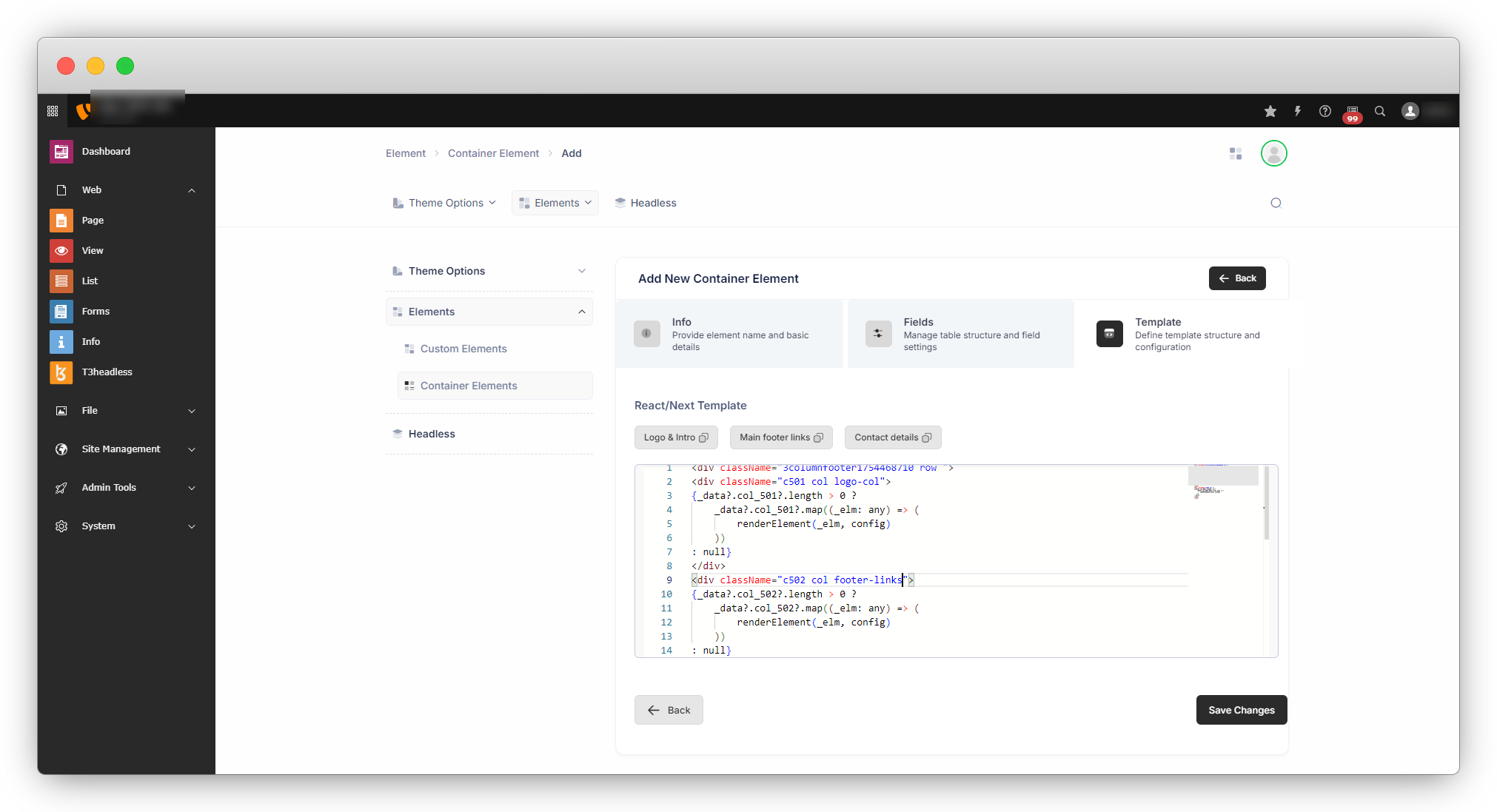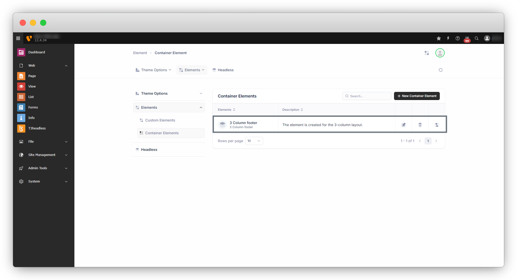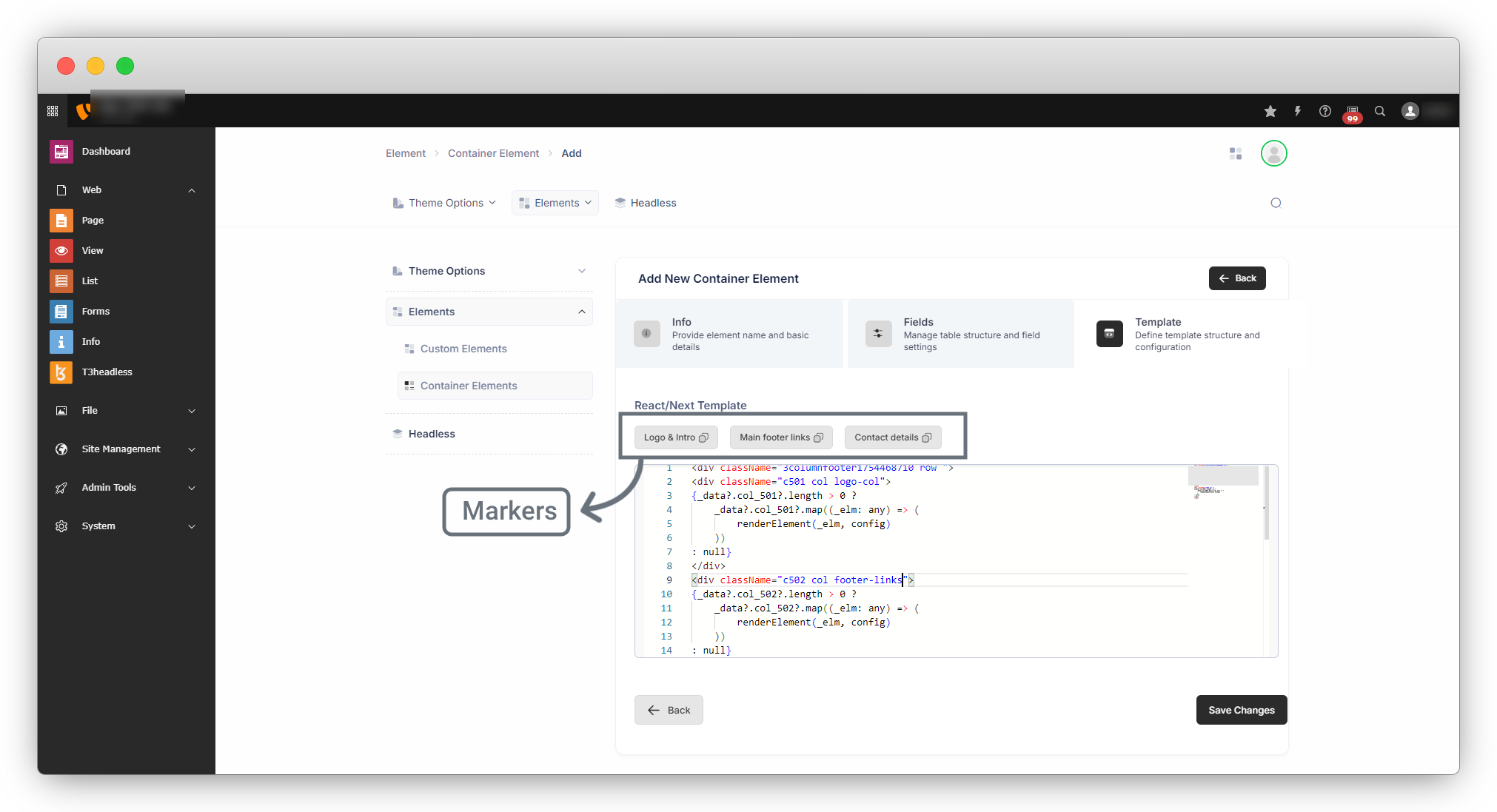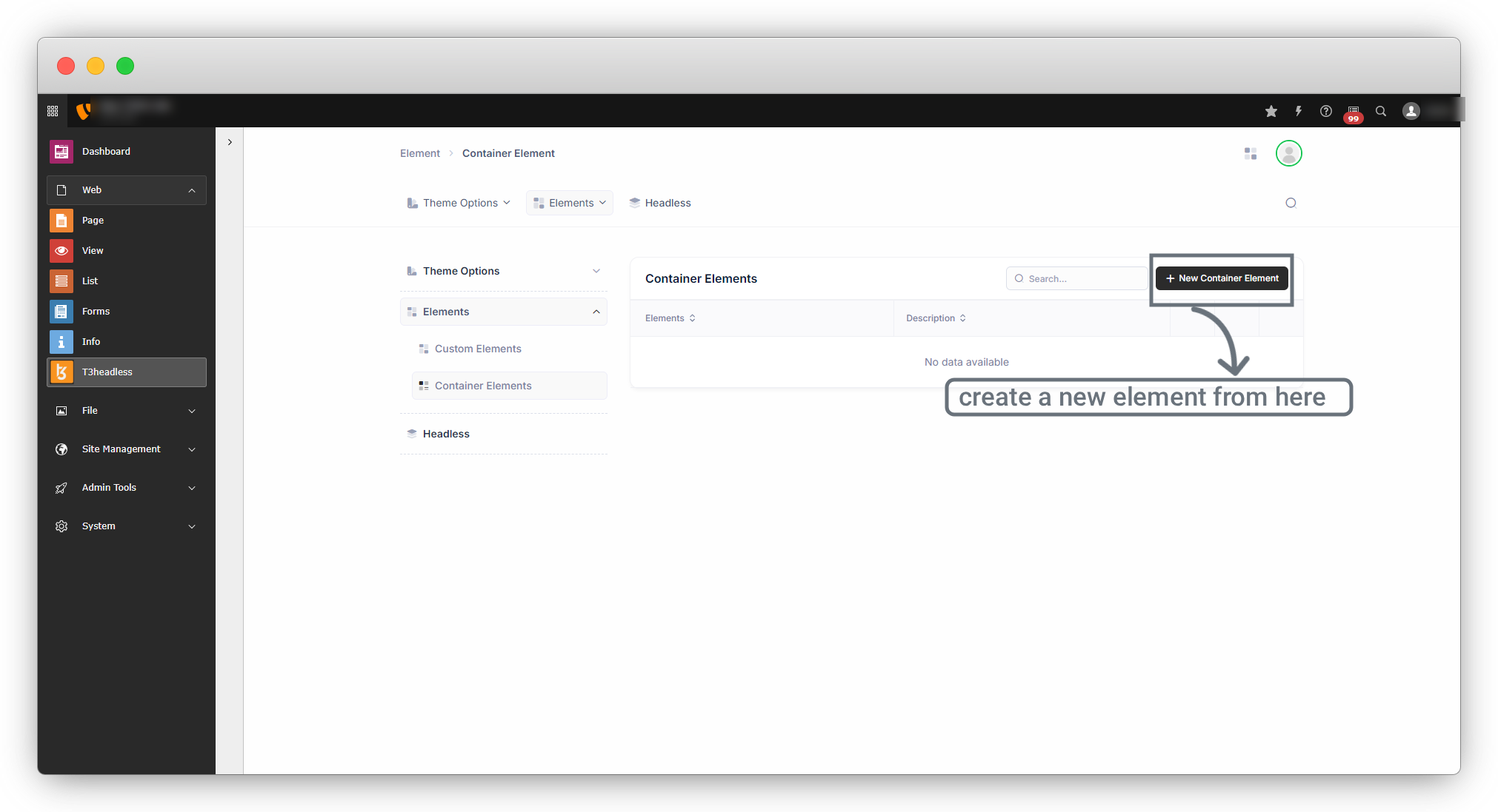 To create a container element, go to t3headless > Elements > Container Elements.