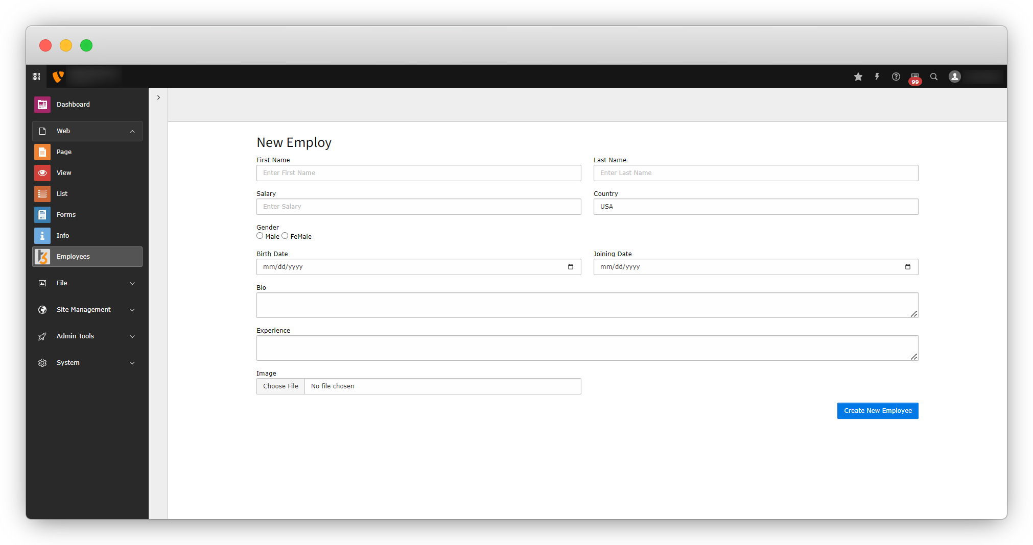 Create new employees in the back-end module