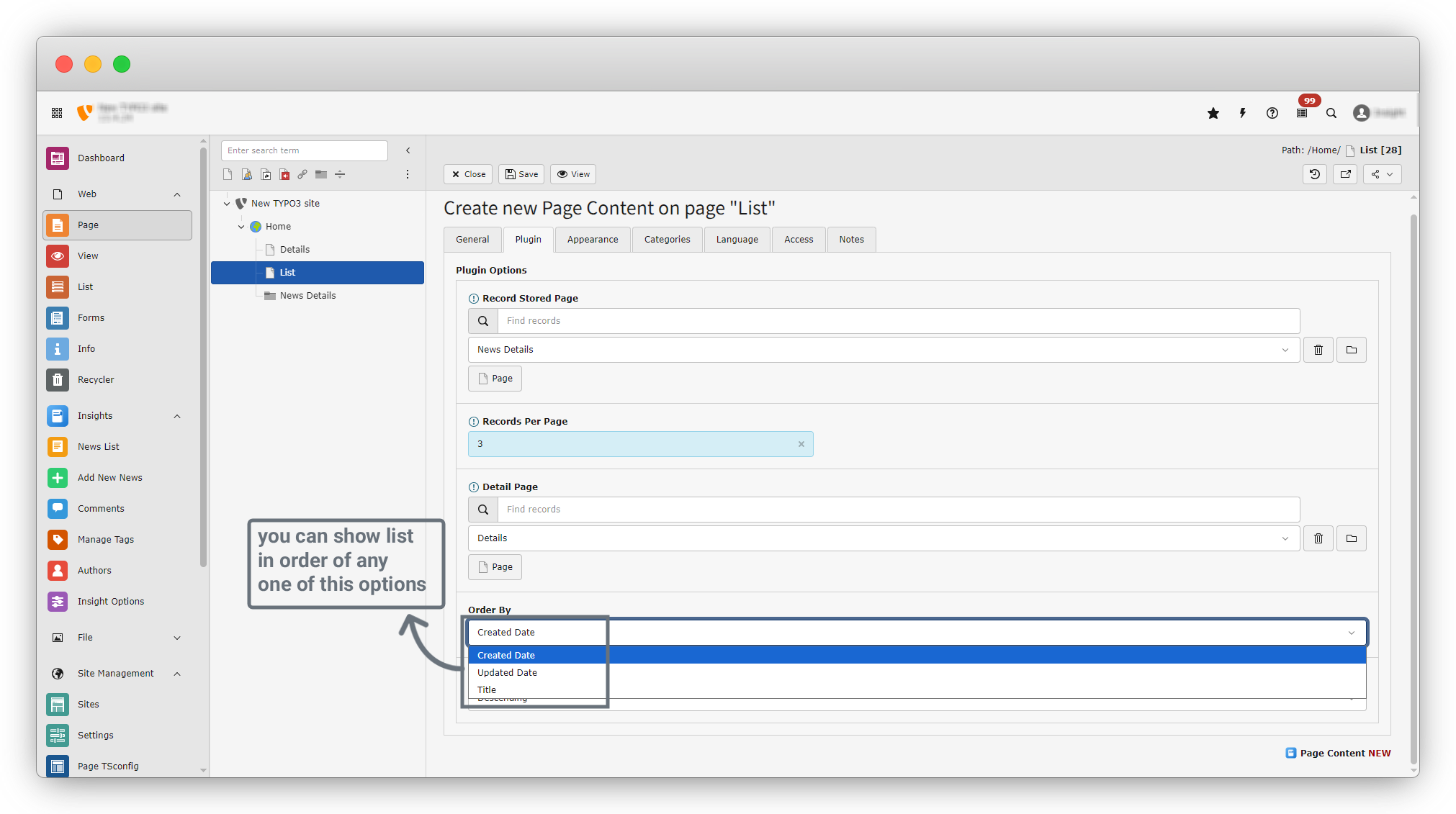 Example: If you select Created Date, your news items will be shown in the order of their creation date.
