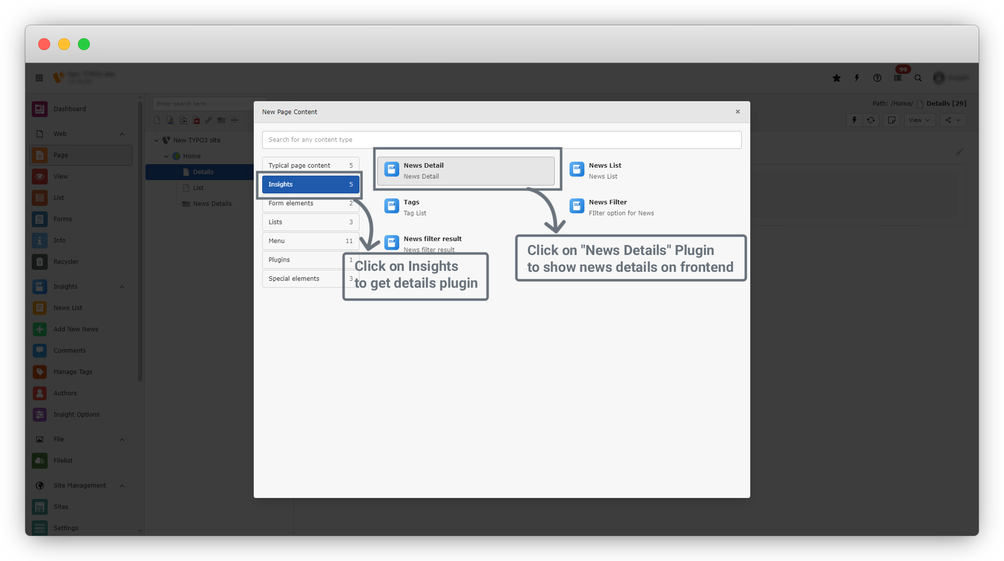 5. As we need to show details so we have to click on "News Details" option in Insights menu