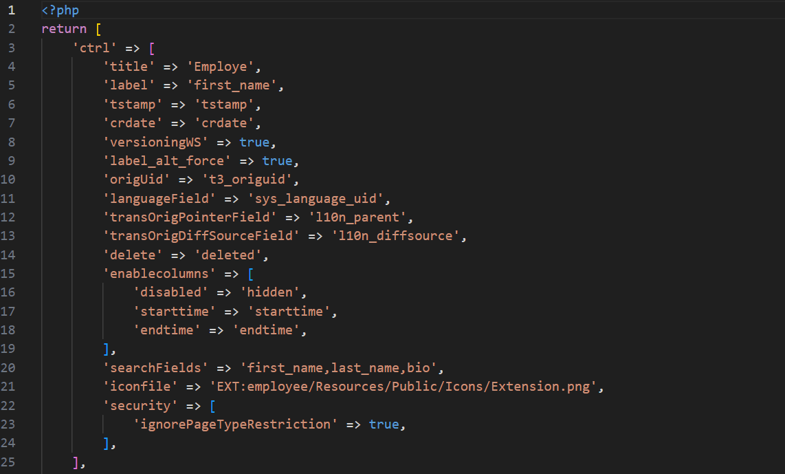 Employee TCA file for “ctrl” (file path: employee/Configuration/TCA/tx_employee_domain_model_employ.php)