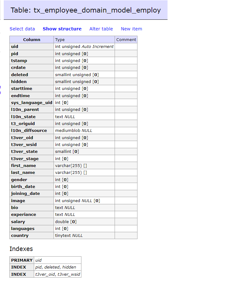 iii ) employee/Configuration/TCA/tx_employee_domain_model_employ.php. Let’s see the updates in files in details