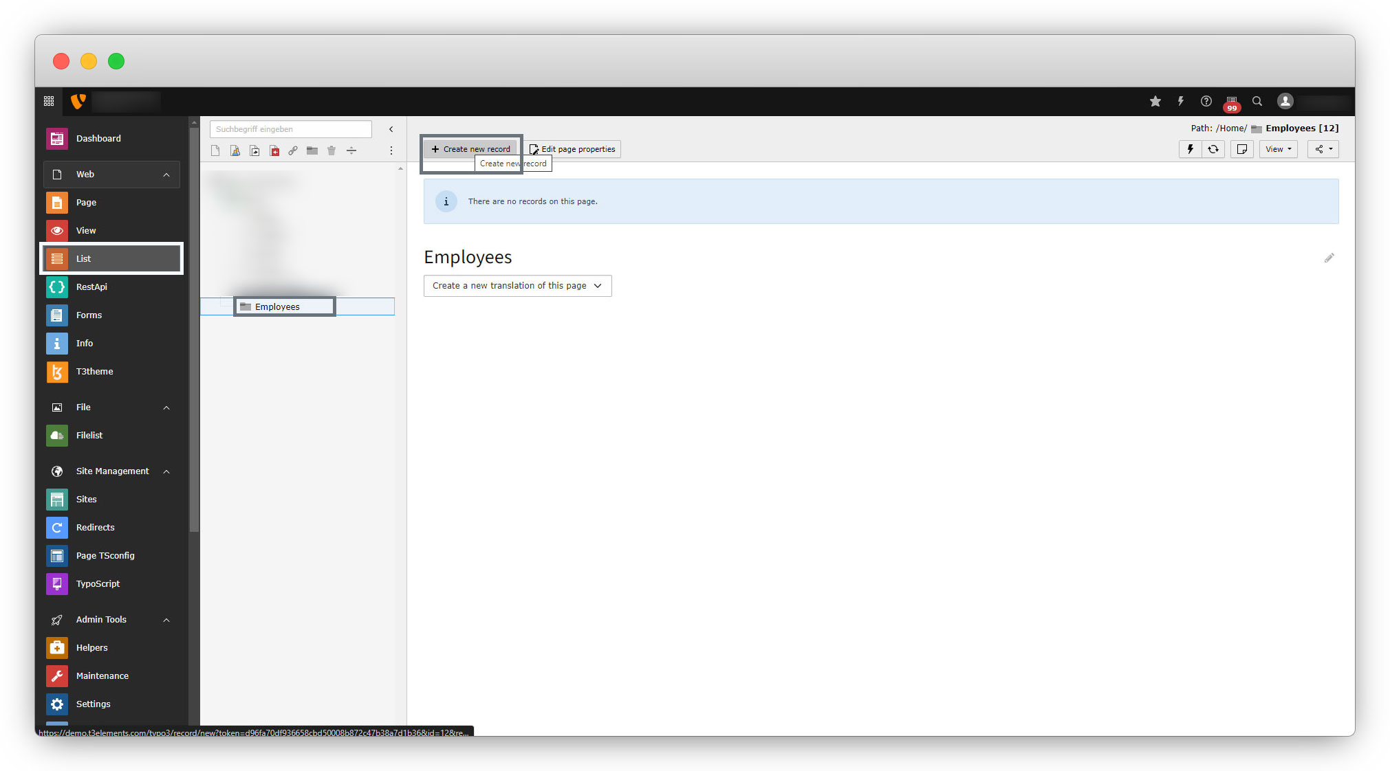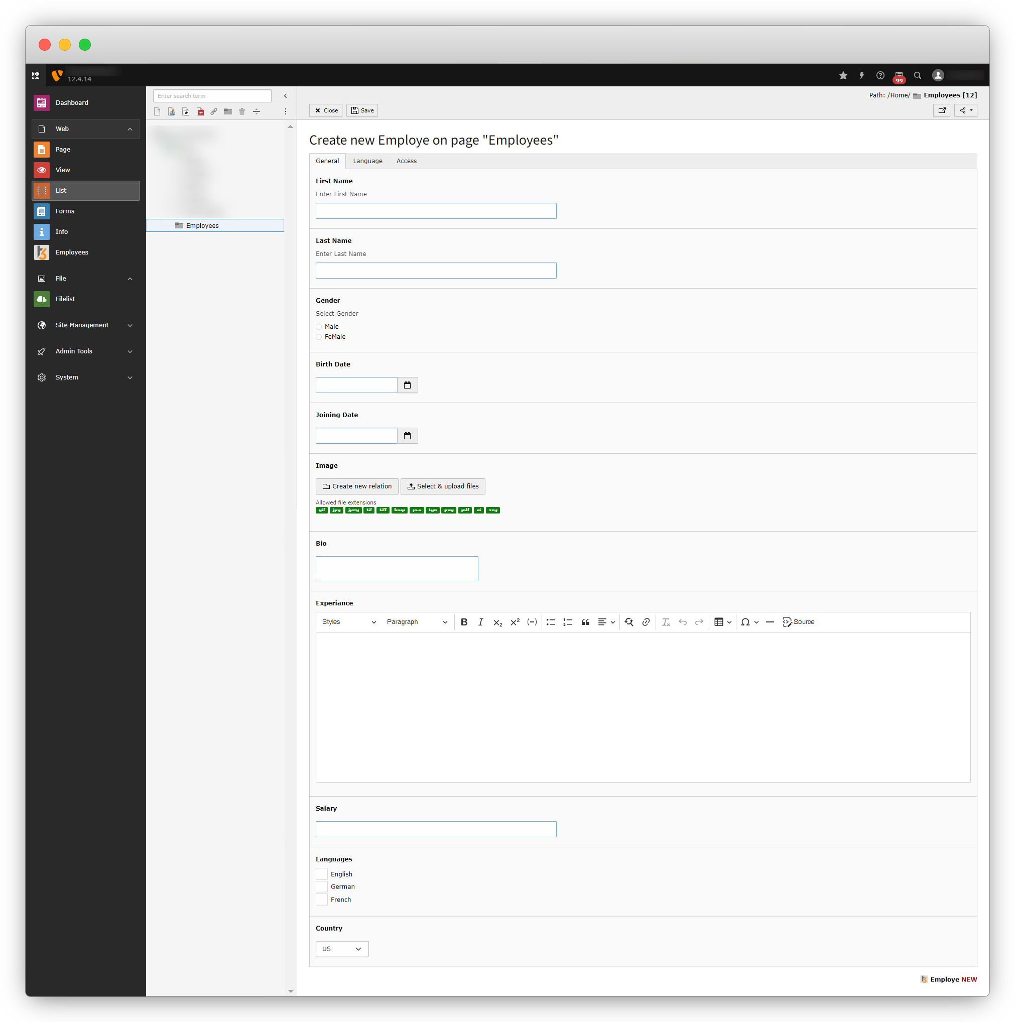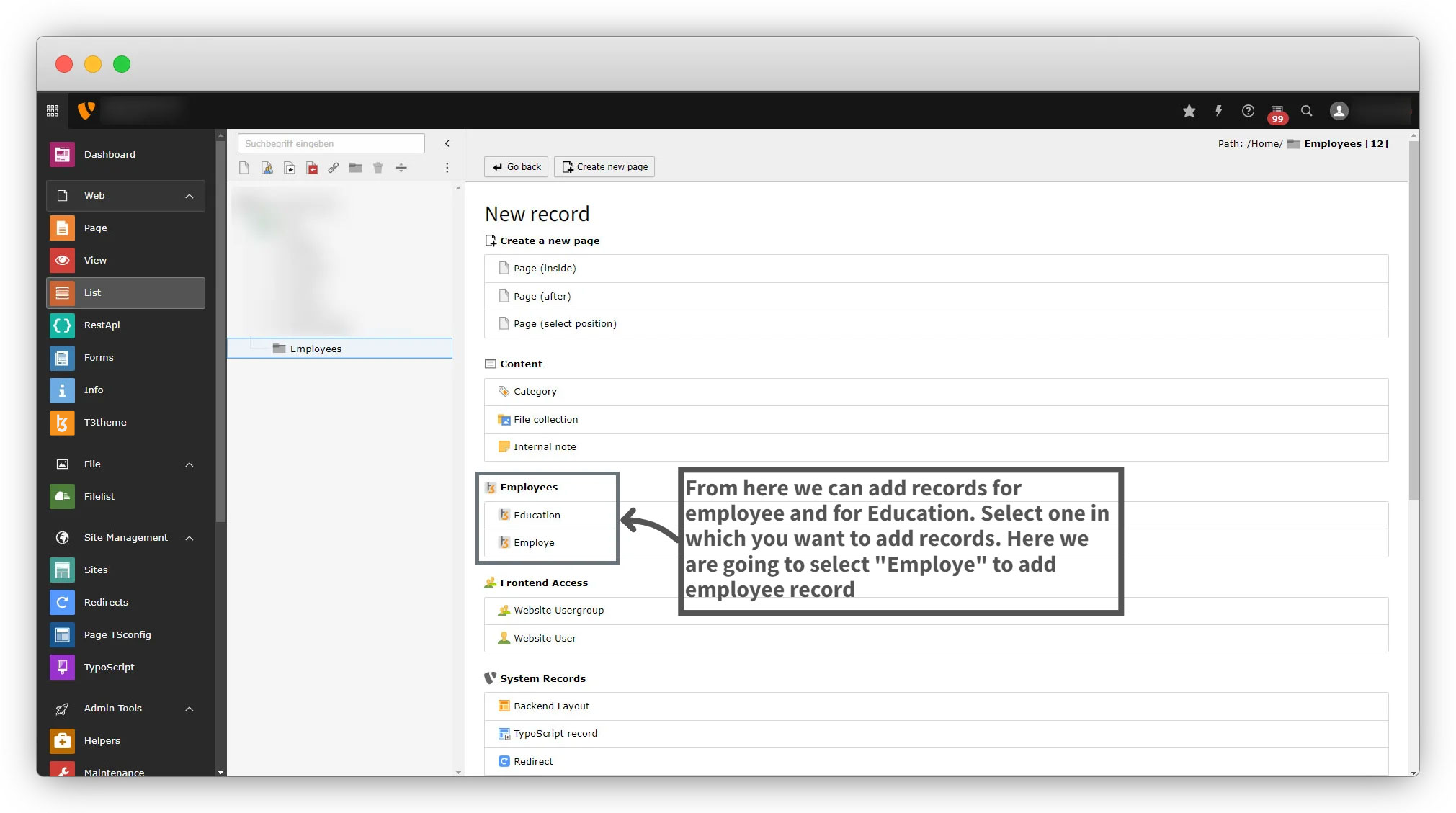 As mentioned above in point 6, after adding TCA files now the option should be visible to add records for the “Employee“. Let’s check if the option is available now or not in this example.