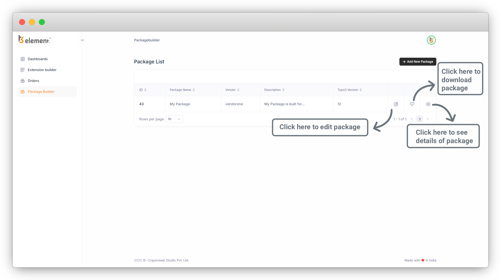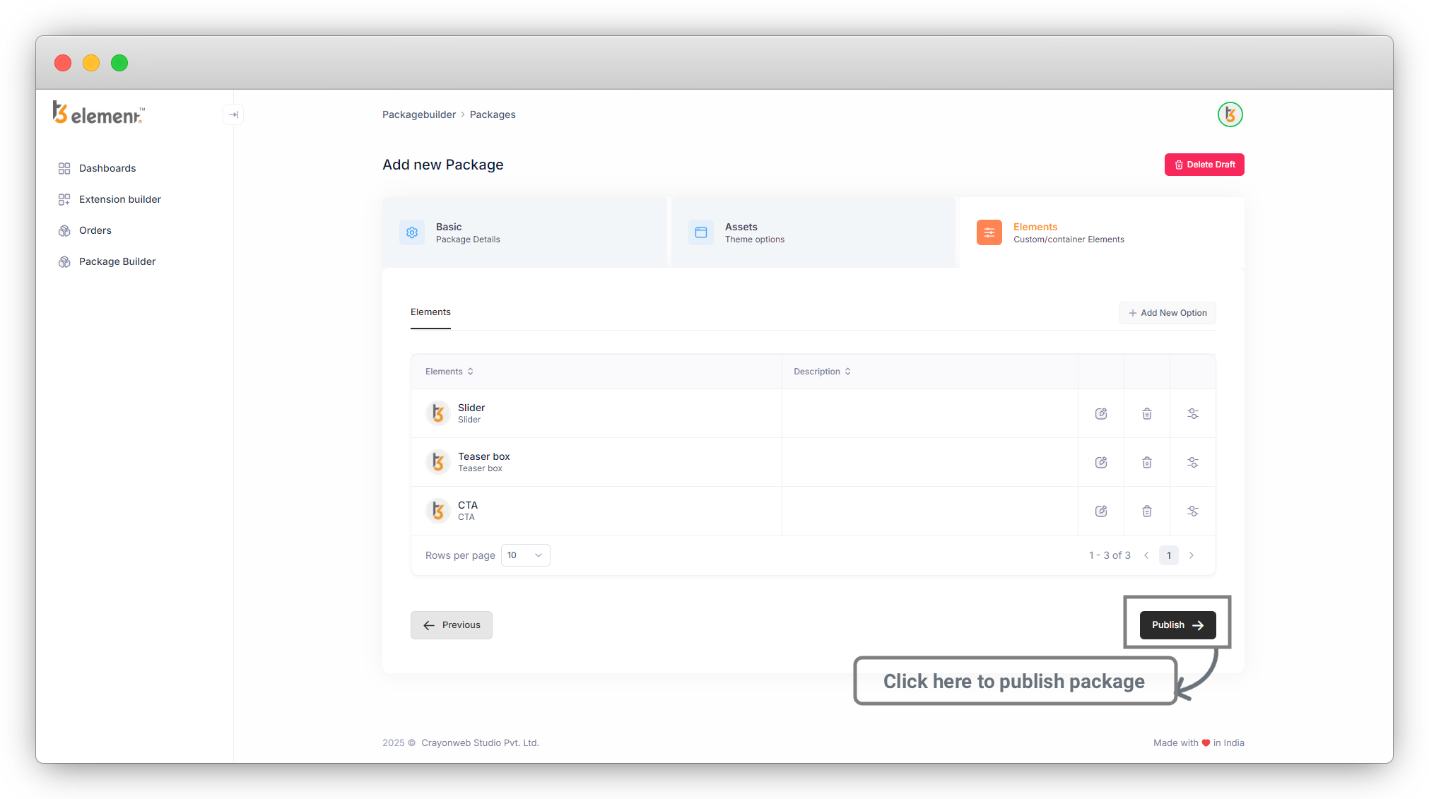 1. After creating all the elements, and added assets now we will build the package. Click on the bottom right button to build the package.