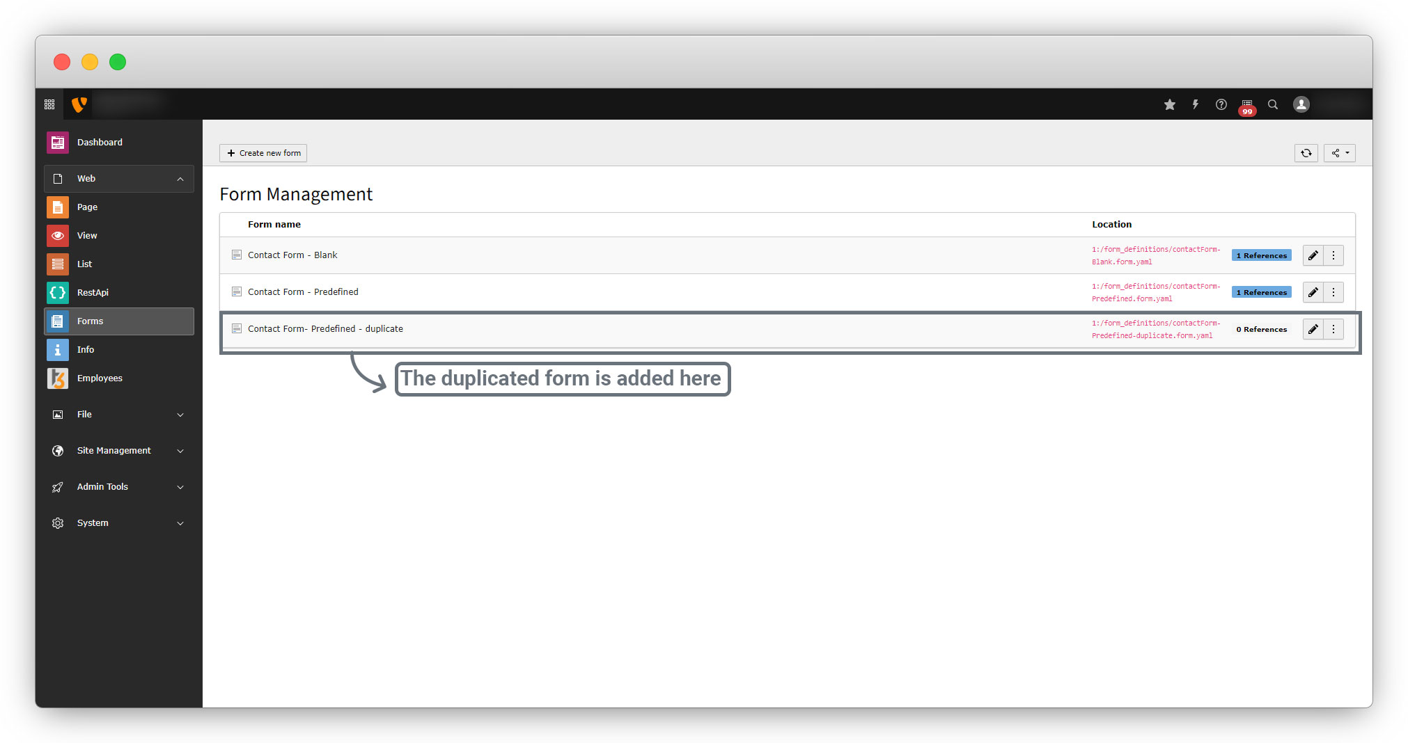Click on the “Duplicate this form” option, add the name of the form, and click on the next button as did at the time of the new form creation, the duplicate form will be created and will be added to the list as you can see in the screenshot below: