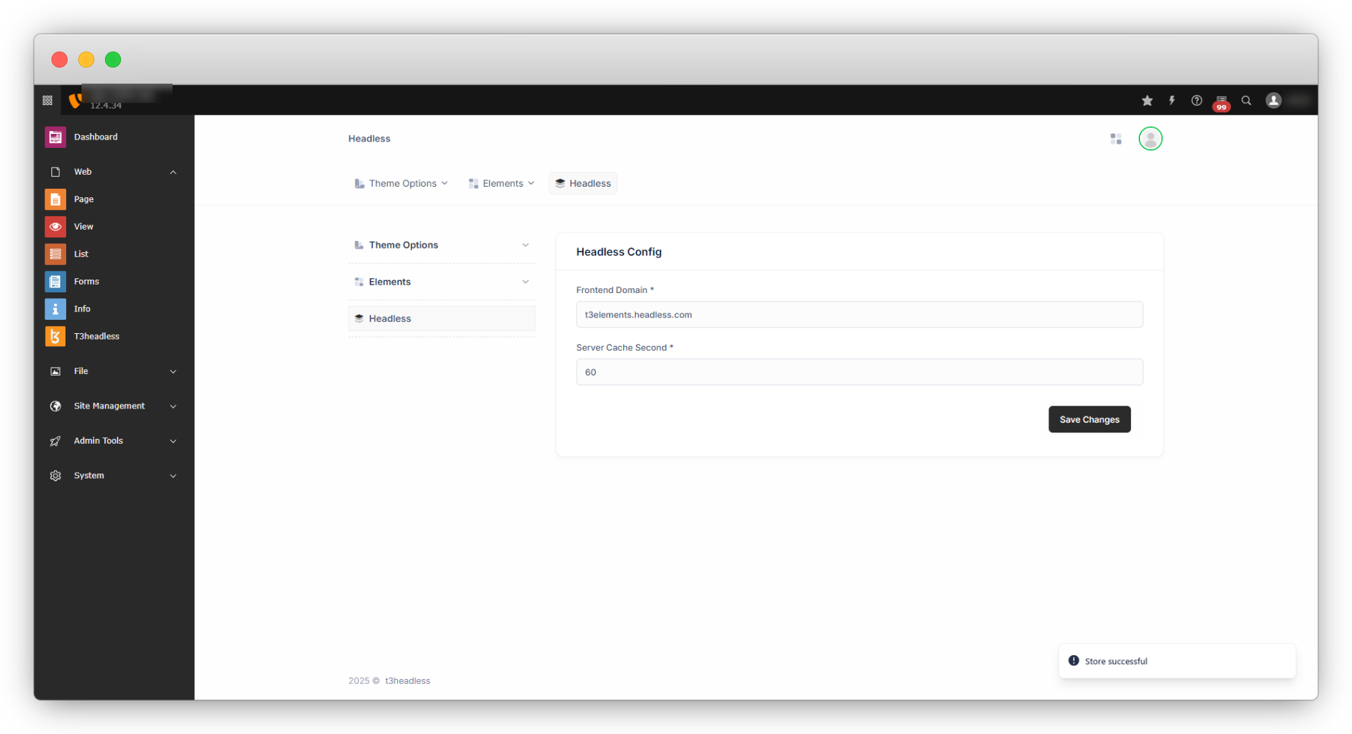 2. Add the Frontend domain with Next.js setup and server cache duration in seconds and click on the “Save Changes” button, and you will get the message “Store Successfully” and the details will be saved and you can see it on the screen.