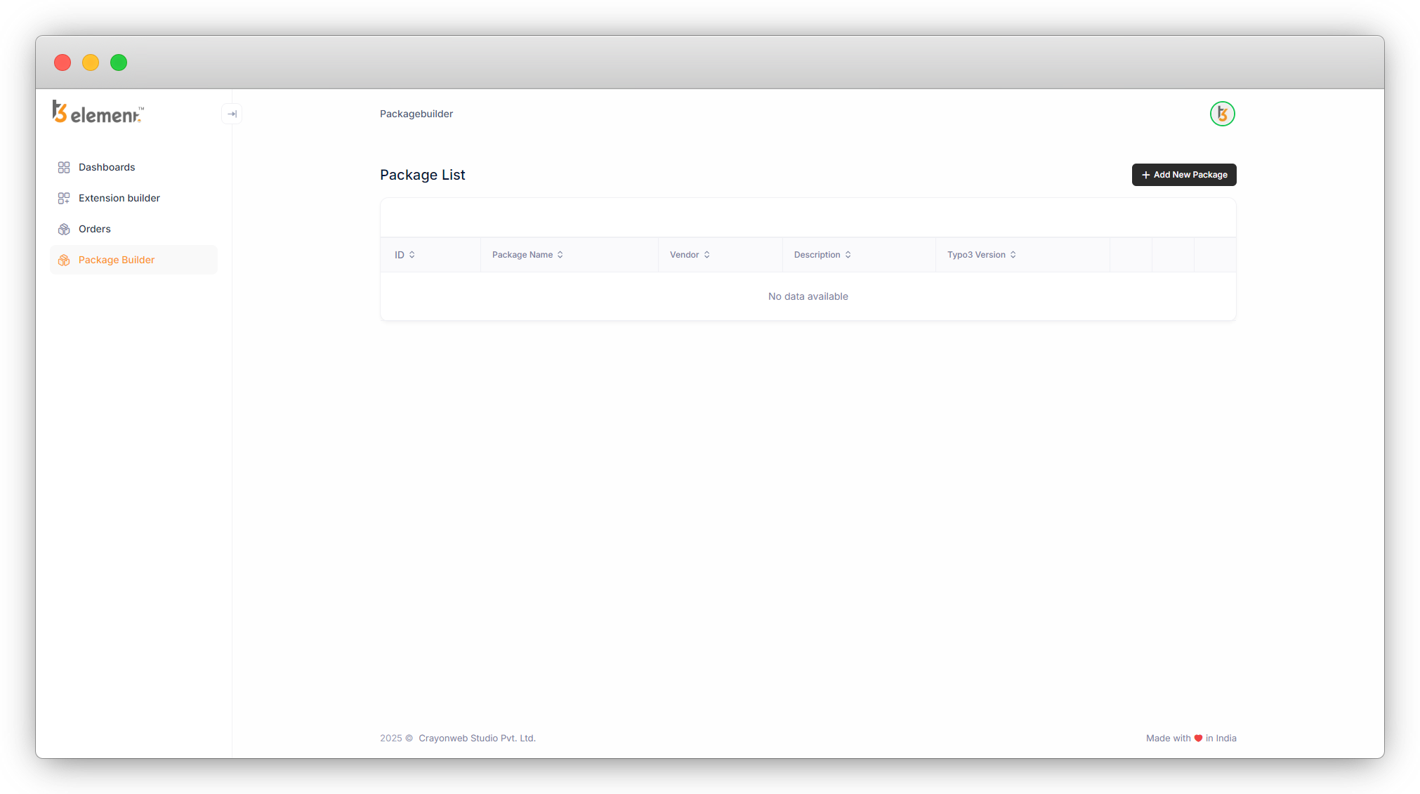 1. After registration, On the left side you can see the sidebar, just below the Dashboard tab, you’ll see the Package Builder tab. Click on it.