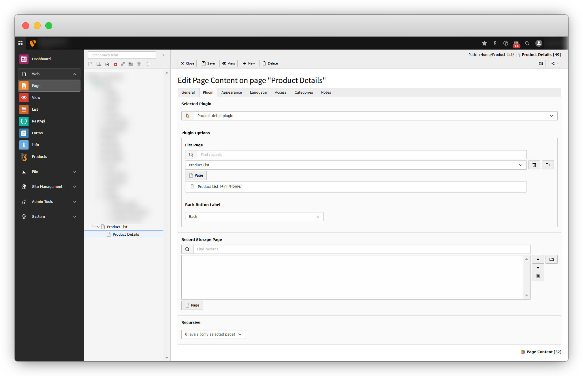 2. We already created the page “Product Details” so we will use that page to add the “Product detail plugin”.