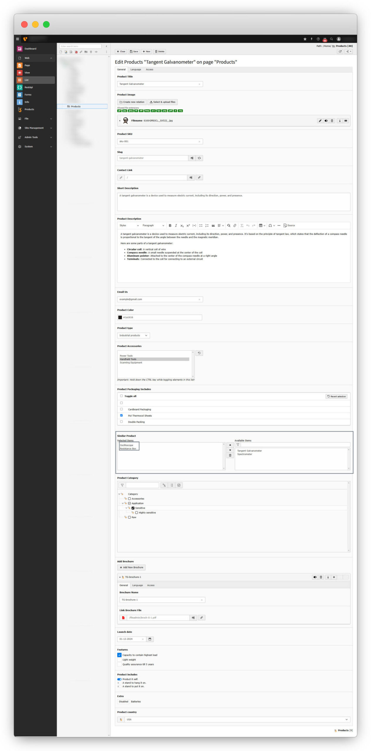 7. Go to “List” module and open the “Products” folder, select the product “Tangent Galvanometer” and add a similar product to its field as seen and highlighted in the below screenshot.