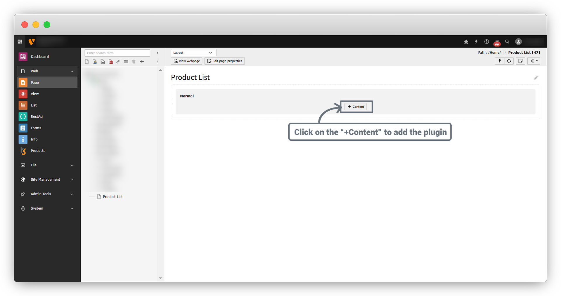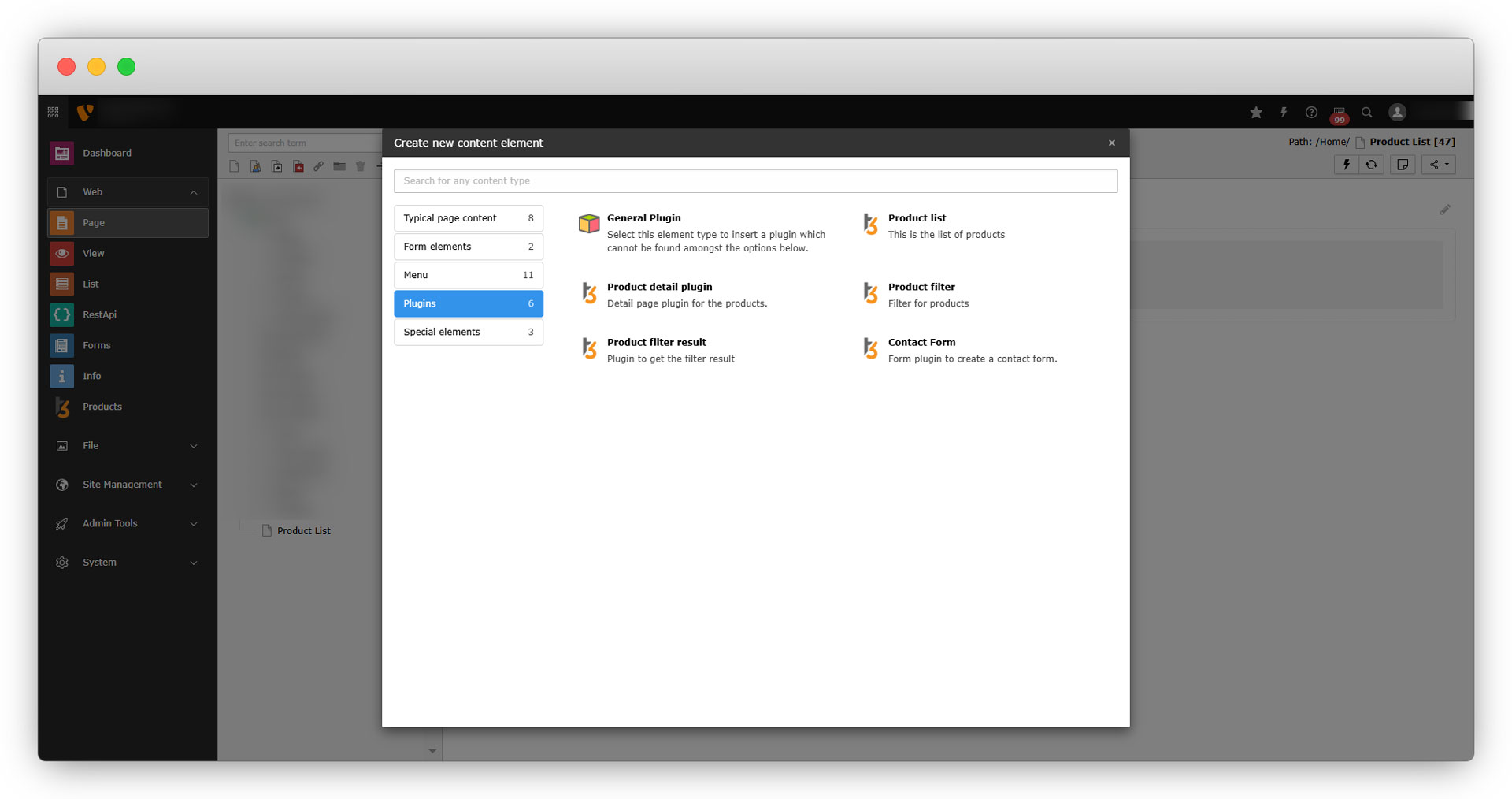 5. Go to “Plugins” in the widget and select the plugin “Product list”, and you will see the below screen.