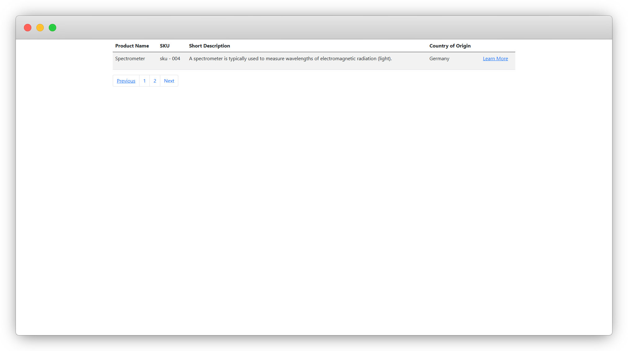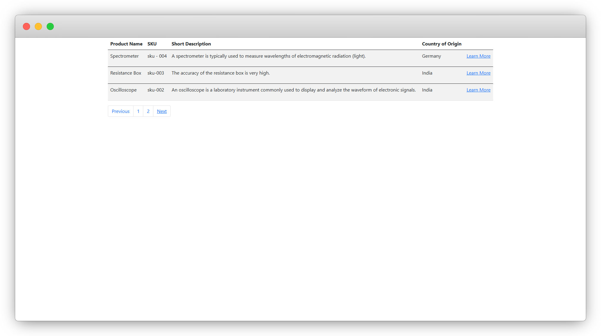 9. You can see the new products in the front-end product list as well. We have total 4 products and at the time of creating the page “Product List” we defined the “Records Per Page” field’s value as 3 so we will get 3 records on the first page and the 4th record will be seen on the second page, and the value of the “Order Direction” is “Descending ” so the records will be arranged in the descending order.