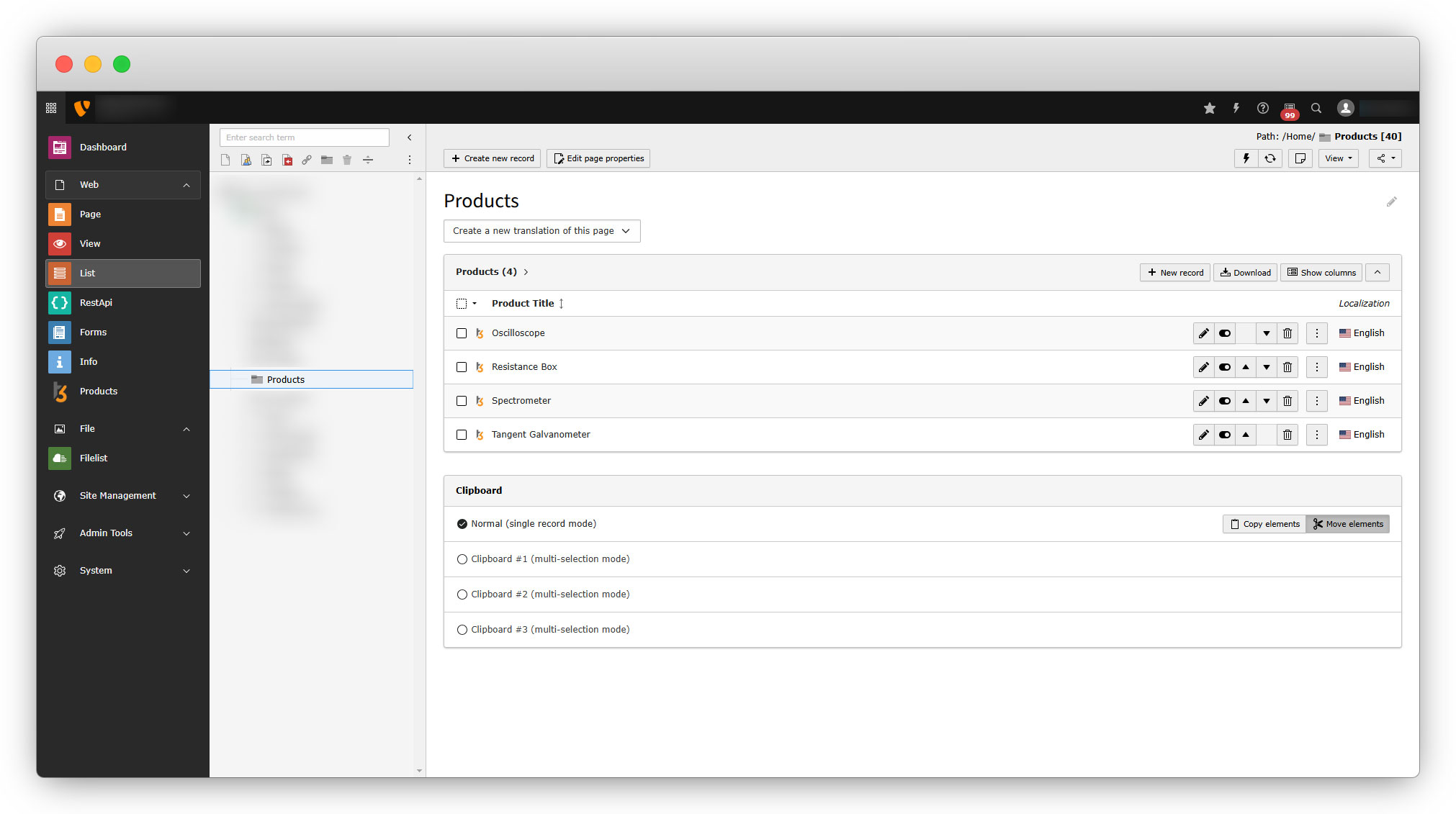 8. After adding more products, they can be seen in the TYPO3 backend “List” module by selecting the folder “Products”.