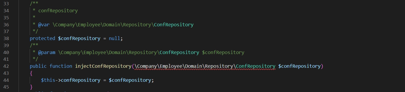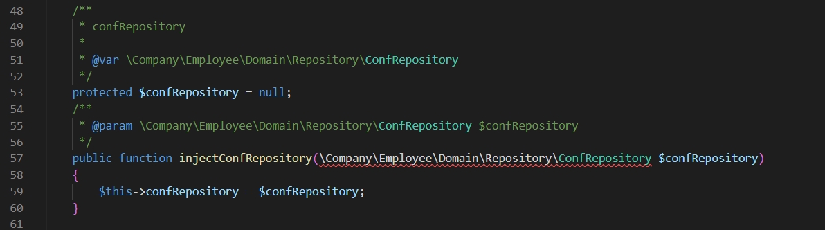 public function injectConfRepository(CompanyEmployeeDomainRepositoryConfRepository $confRepository)