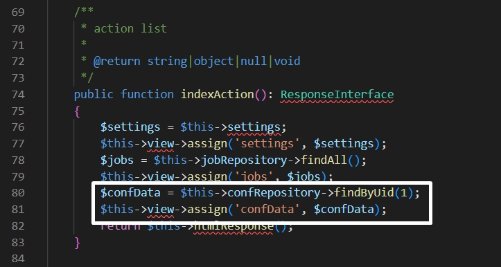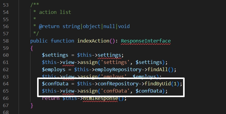 2. Add confData in indexAction()
