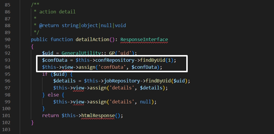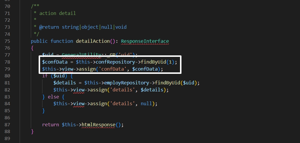 3. Add confData in detailAction()
