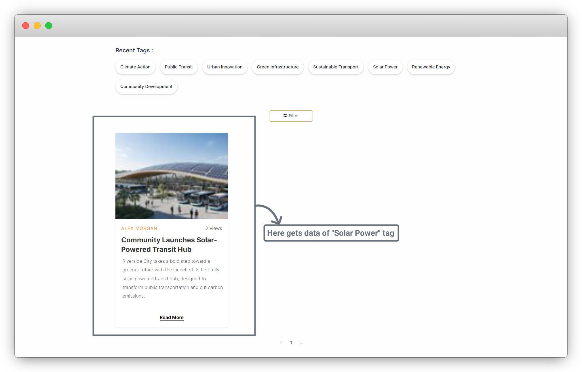 11. Now, filter data using the “Solar Power” tag. Click on the “Solar Power” tag, and a list of news items associated with that tag will be displayed.