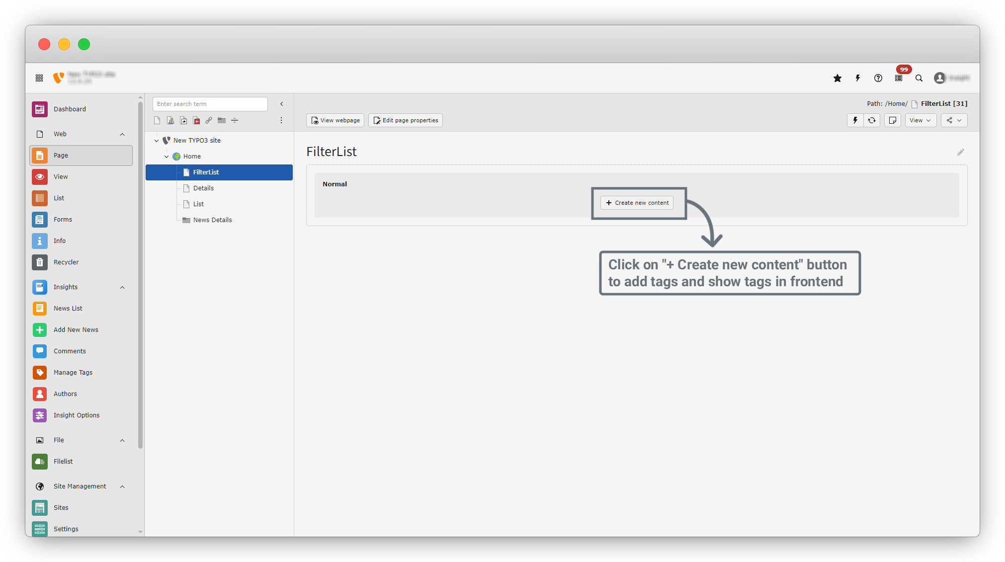 7. First, let’s create Tags.
