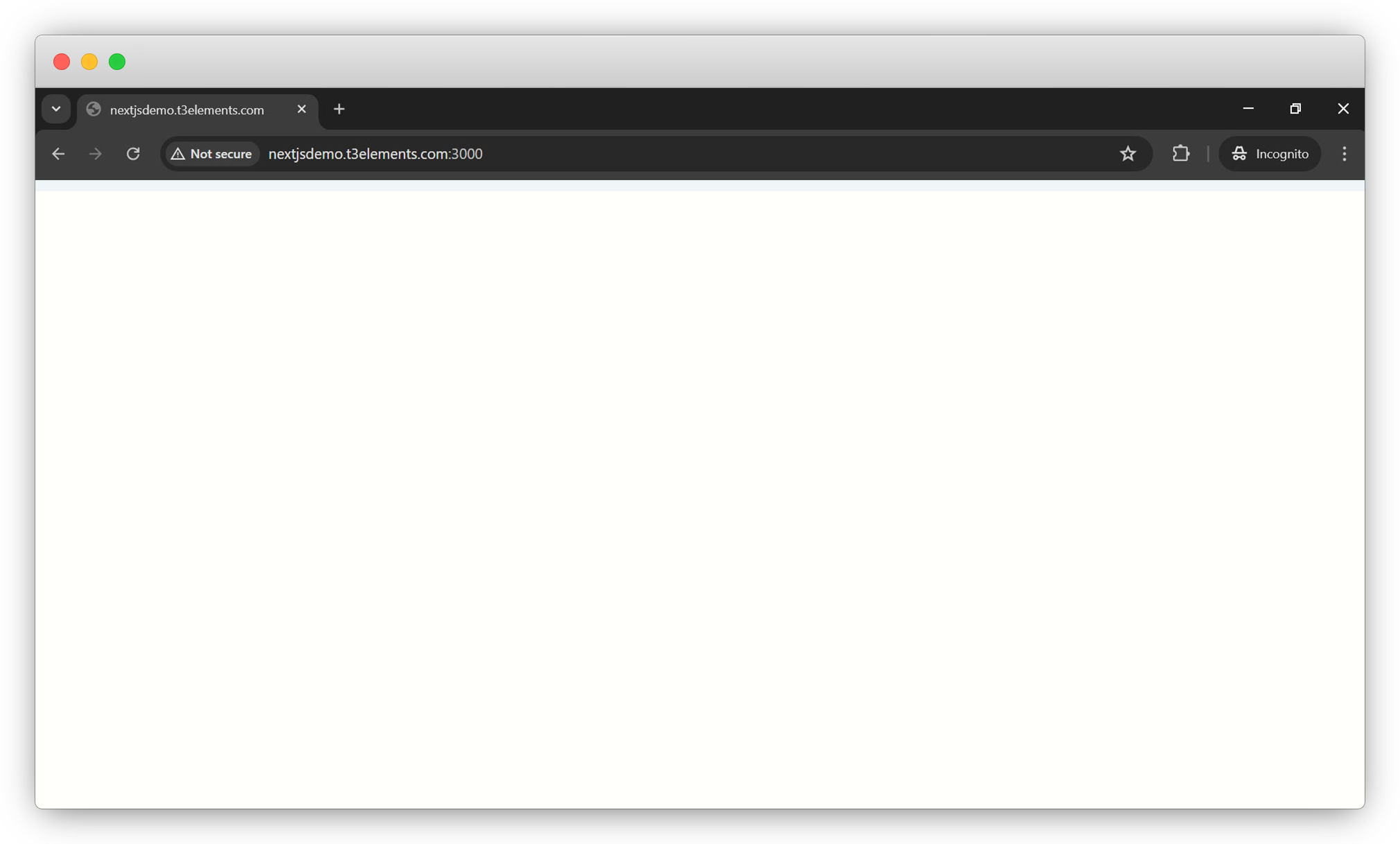 3.5.2.3. Now open your browser with port 3000, here the domain is headless.t3elements.com so the URL will be headless.t3elements.com:3000. You will see an empty page as we didn’t add anything yet to the page.