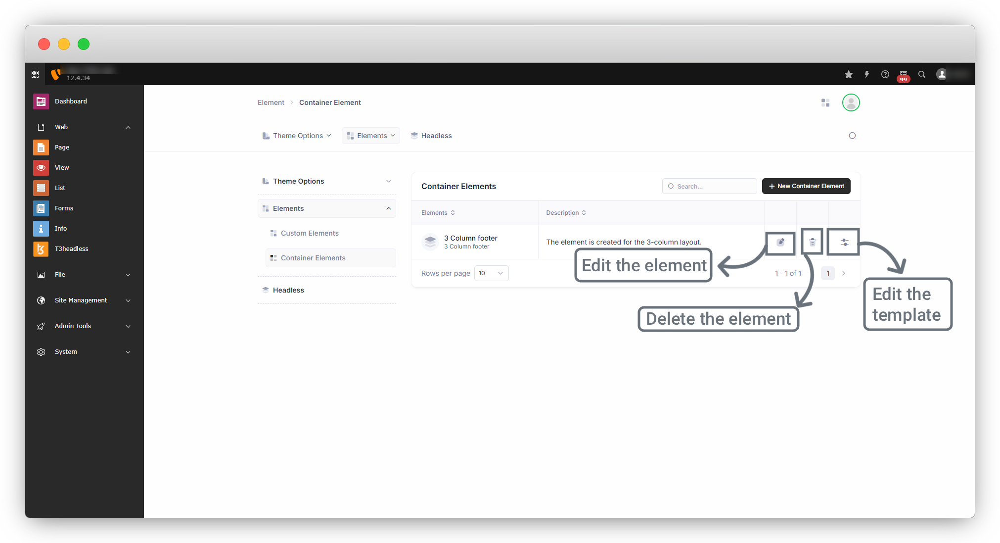 2. Click on the edit icon to edit the element as seen in the above screenshot.
