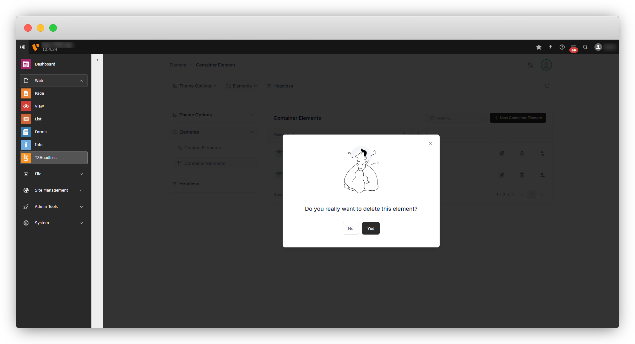 3. But if you are going to delete any element that is not in use then you will get a dialogue with just a confirmation message.