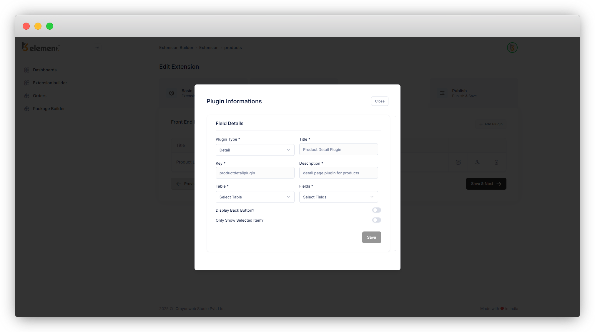 5. As you select the table, the “Fields” dropdown will enable and you can select the fields that will appear on the detail page. Generally, all the fields should be there on the detail page. Or you can add the fields as per your requirement.