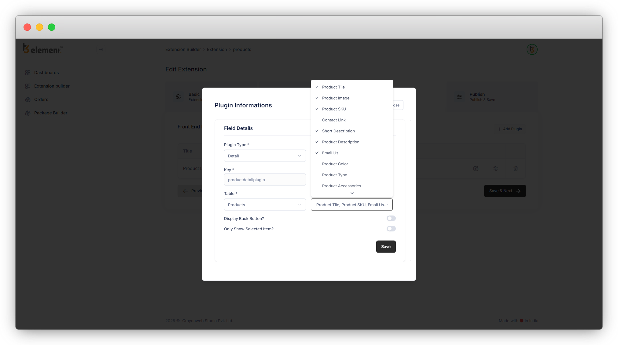 2. As you select the “Detail” plugin, you will see the below options for the detail plugin.
