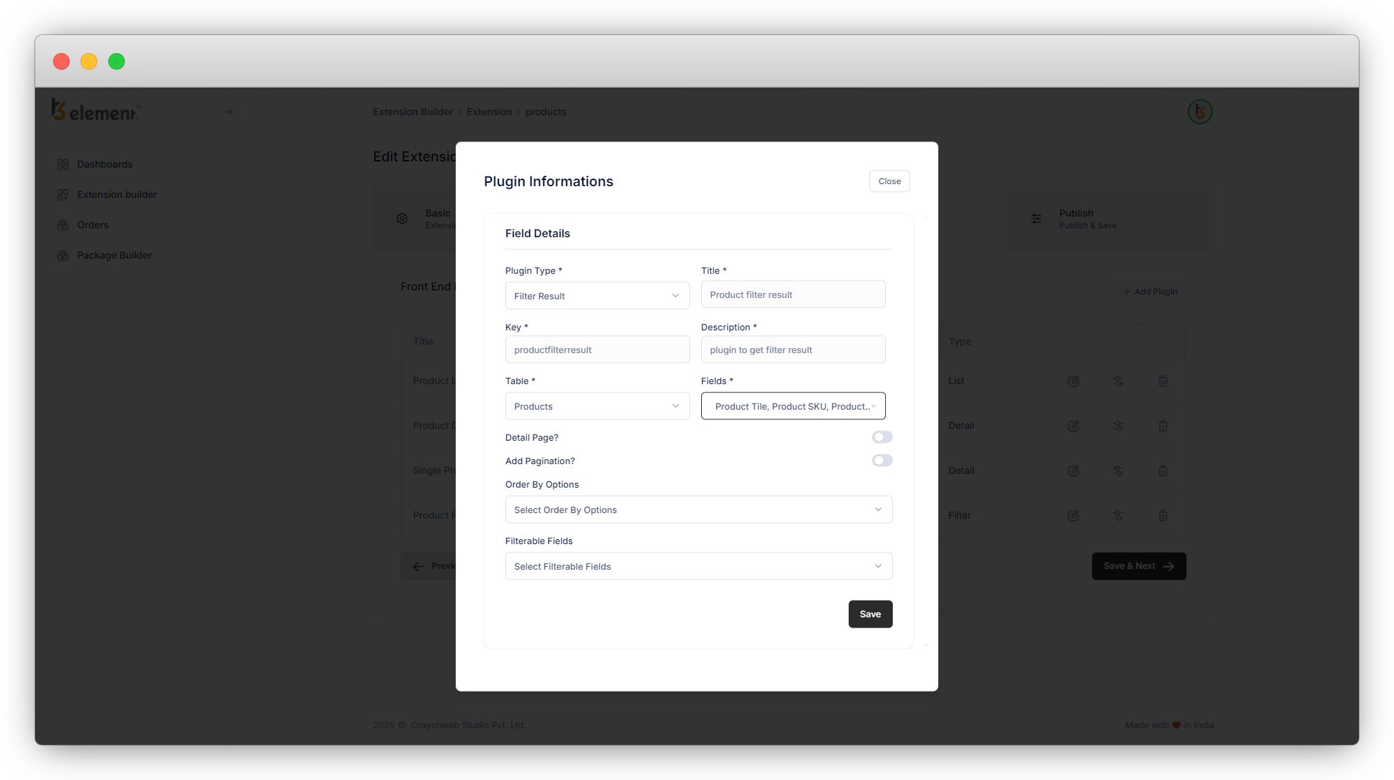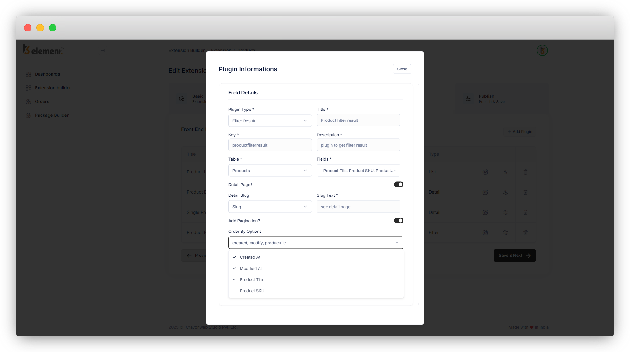 9. “Order By Options” is a mandatory field, select the options you think you will need in your extension. Let’s select the “Created At”, “Product Title”, and “Launch Date” fields. Please note here that the “Created At” and “Modified At” fields are default fields for “Order By Options” field, and other fields like here “Product Title”, “Product SKU”, “Launch Date”, etc. will be added according to your selected table’s fields. All the fields with the data type “String” and “Date” will be shown here as options.