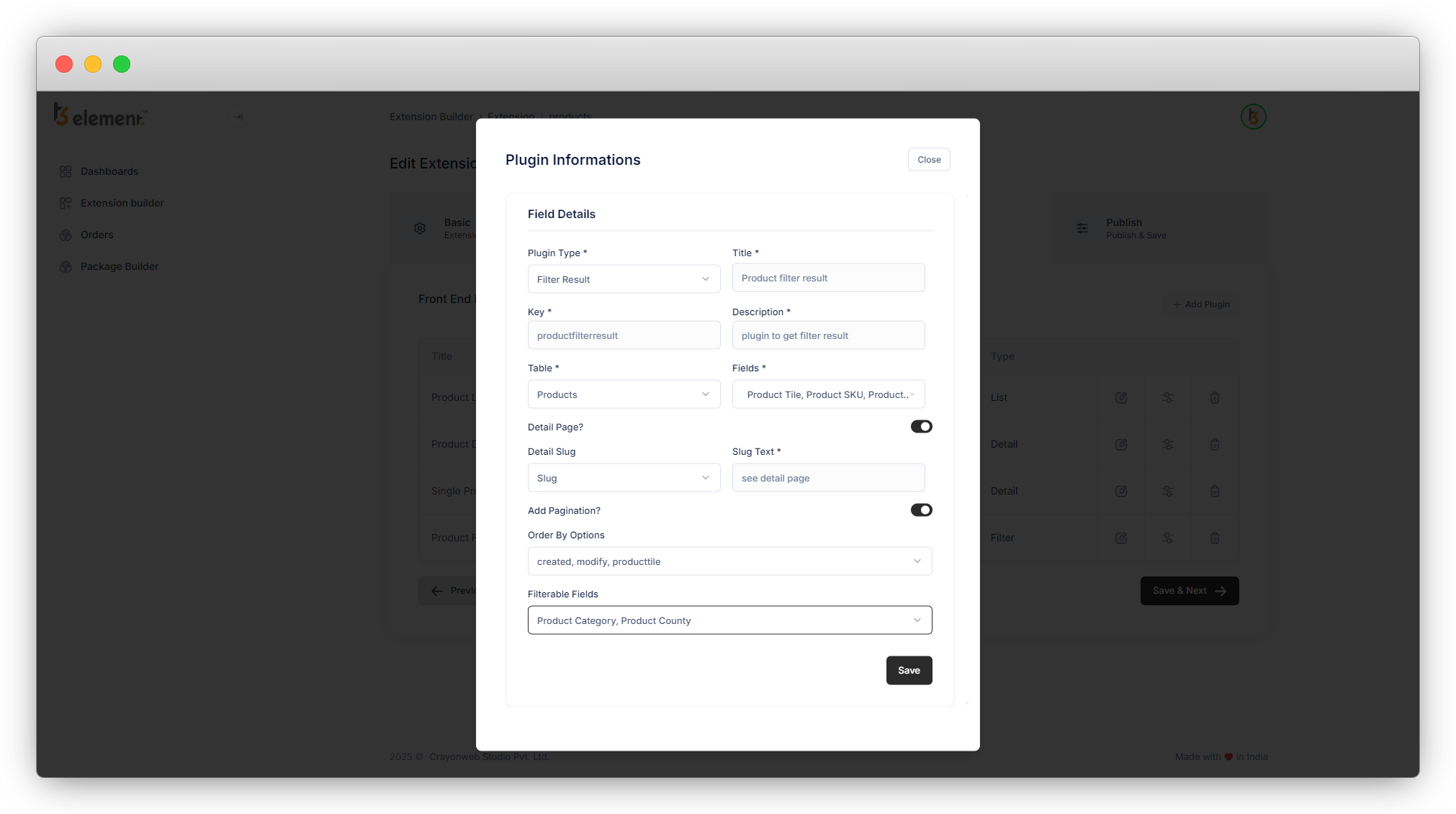 - We have the field “Slug” in the “Products” table so we have the option of the “Slug” field in “Detail Slug”.