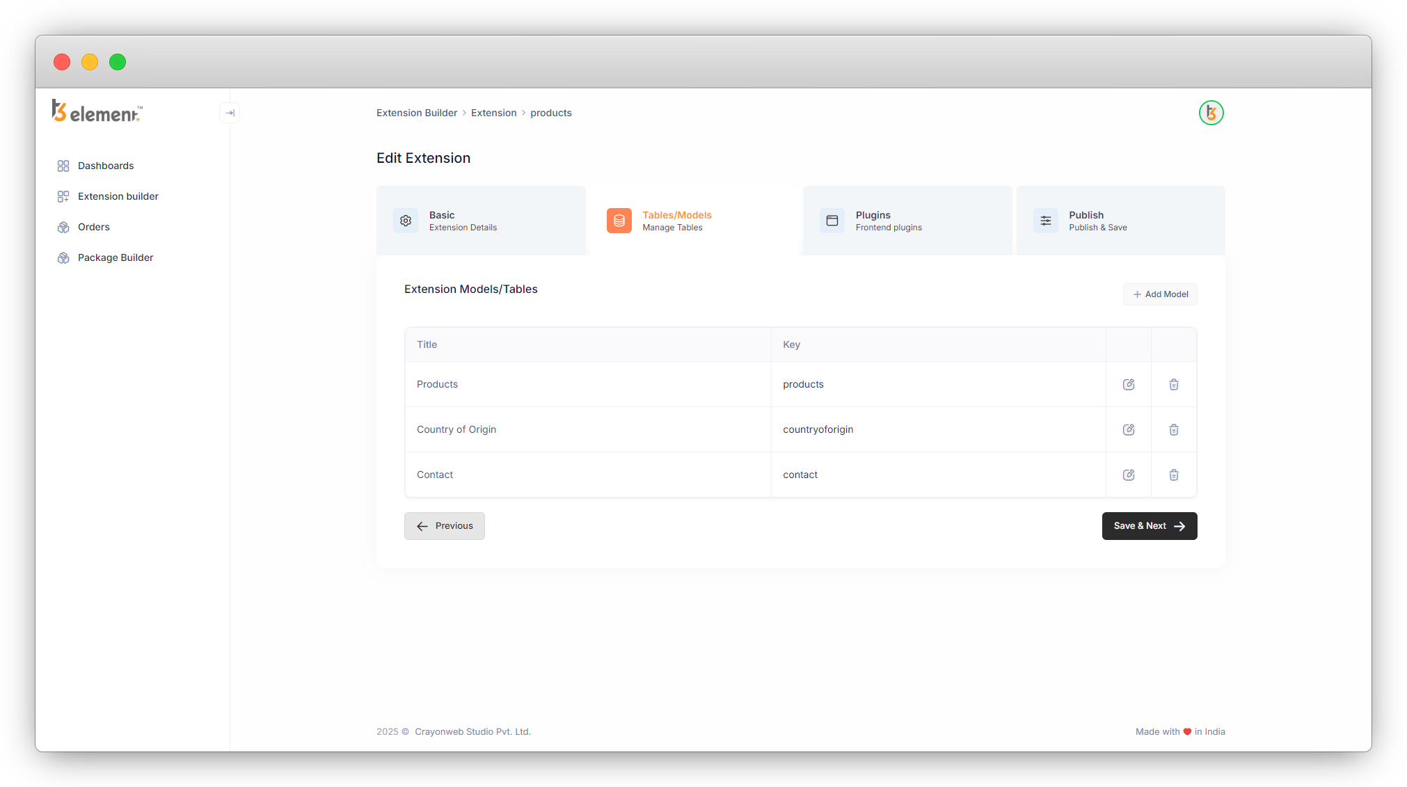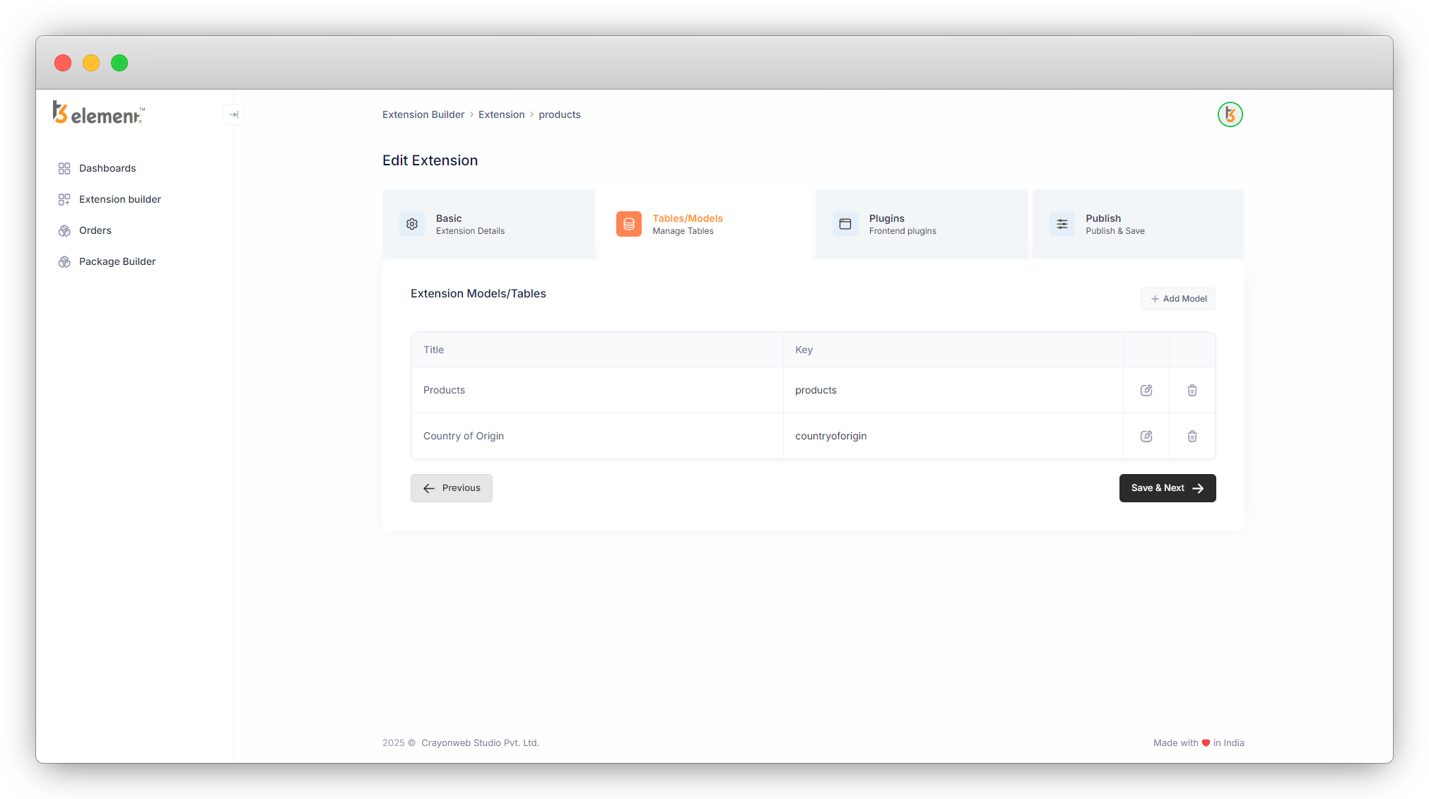 2. So after clicking on the “Save & Next” button, let’s click on the “Previous” button, and go to the Tables/Models.
