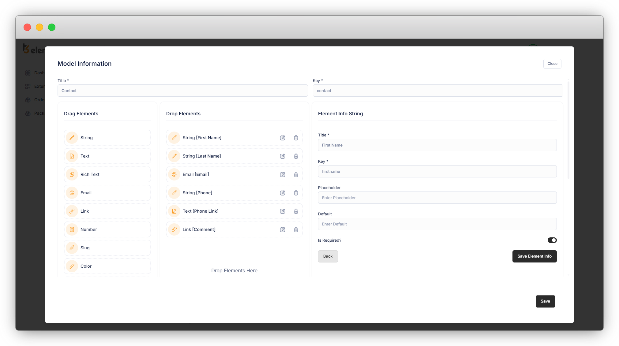 5. Here we have added First Name [Required] – String Field, Last Name [Required] – String Field, Email [Required] – Email field, Phone – String Field, and Comment – Text Fields.