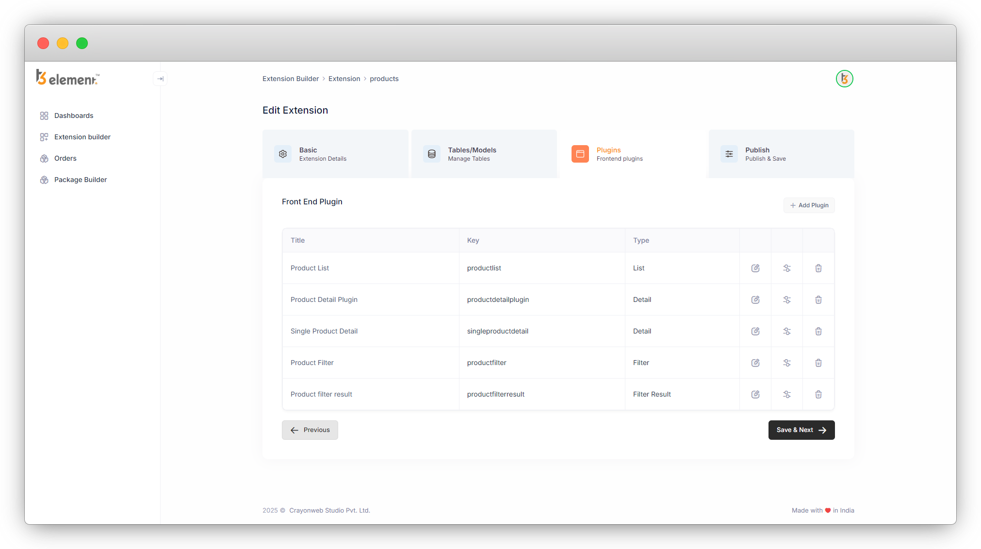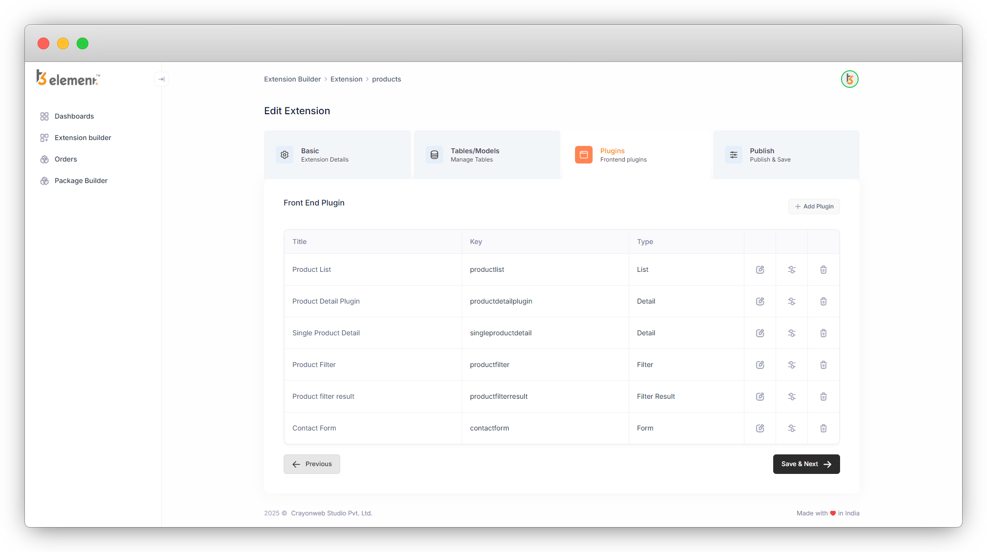 7. Click on the “Save & Next” button, and the next tab “Plugins” will open with a list of 5 plugins we created as seen in the screenshot below.