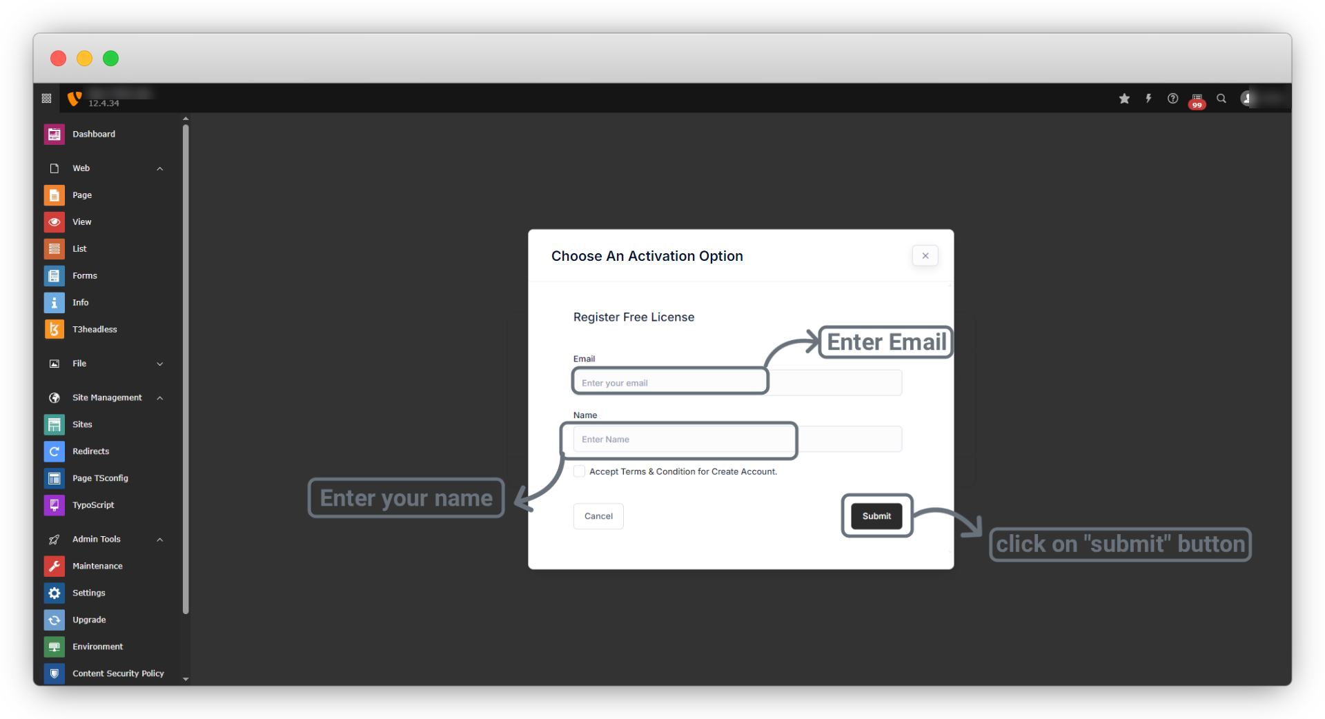 2.3. Case -2: If you didn’t purchase the product but want to use the t3headless extension, then you can register directly after extension installation and you will get the license key in your mail, then you can add the license key to activate the t3headless. Please follow the below steps to activate the t3headless extension by Free Registration.