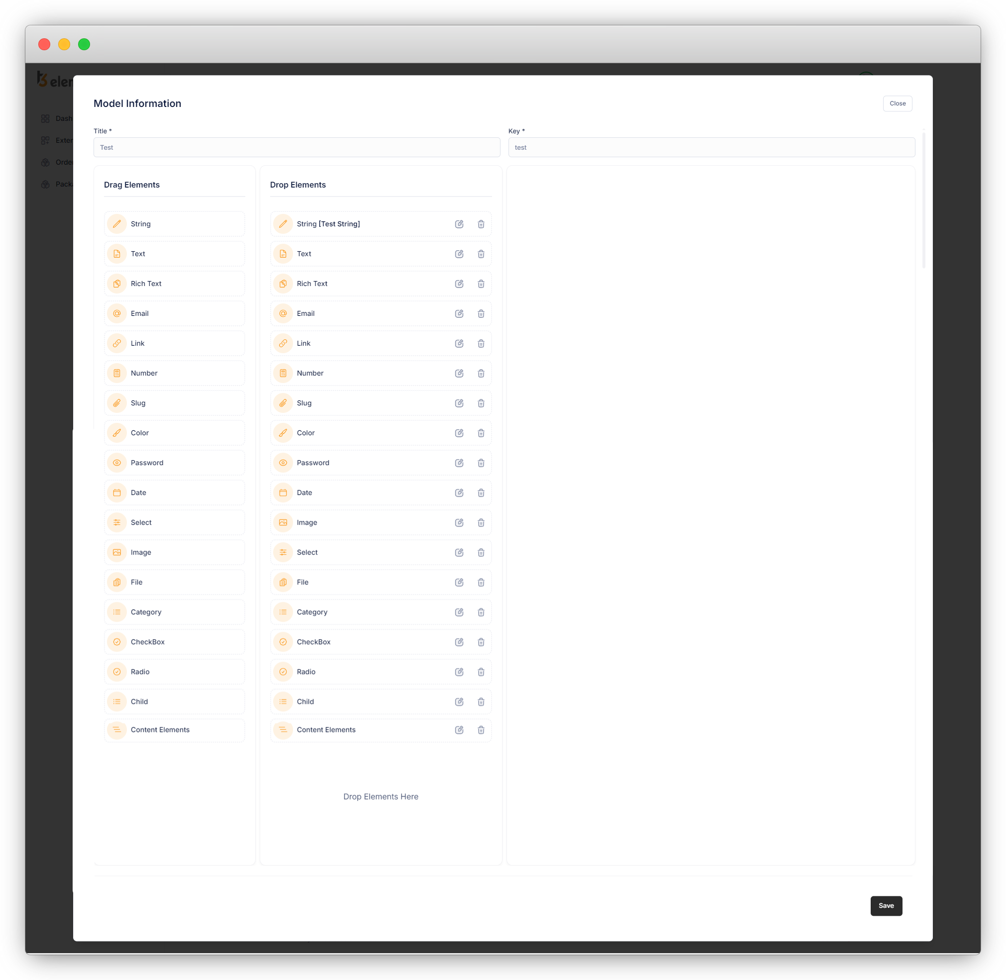 6. You can add the elements by just drag and drop them into the “Drop Elements” column.